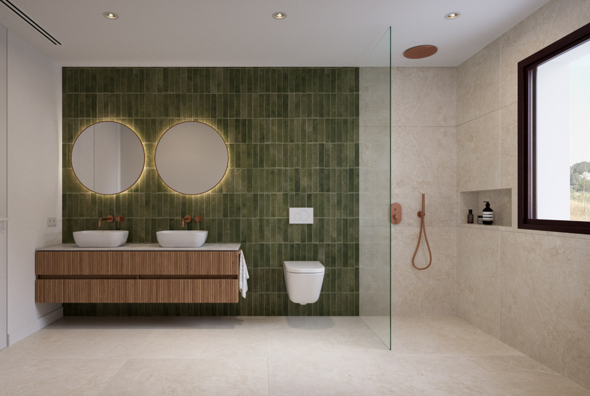 The serene master suite offers a private bathroom and direct access to a spacious terrace with sea views. This peaceful space provides the perfect place to begin each day.