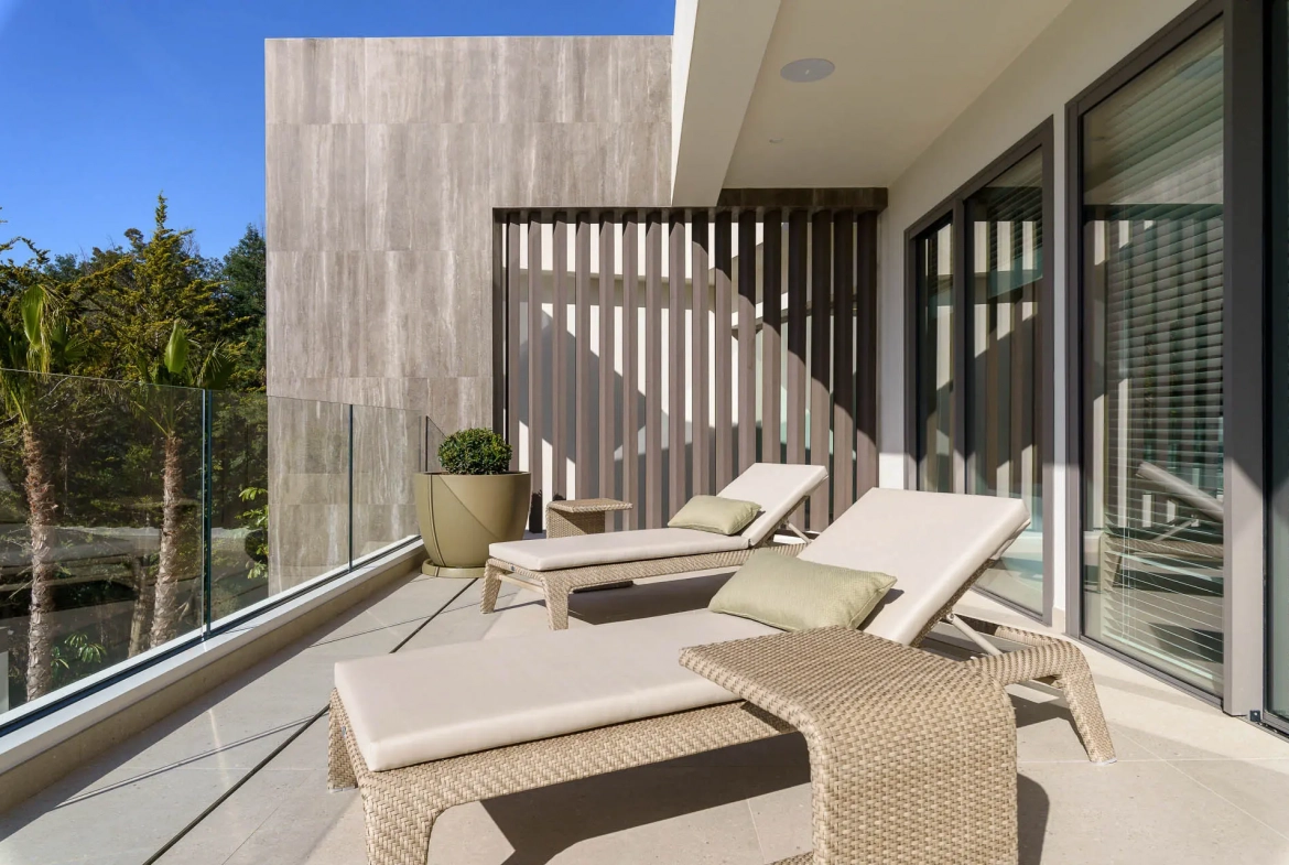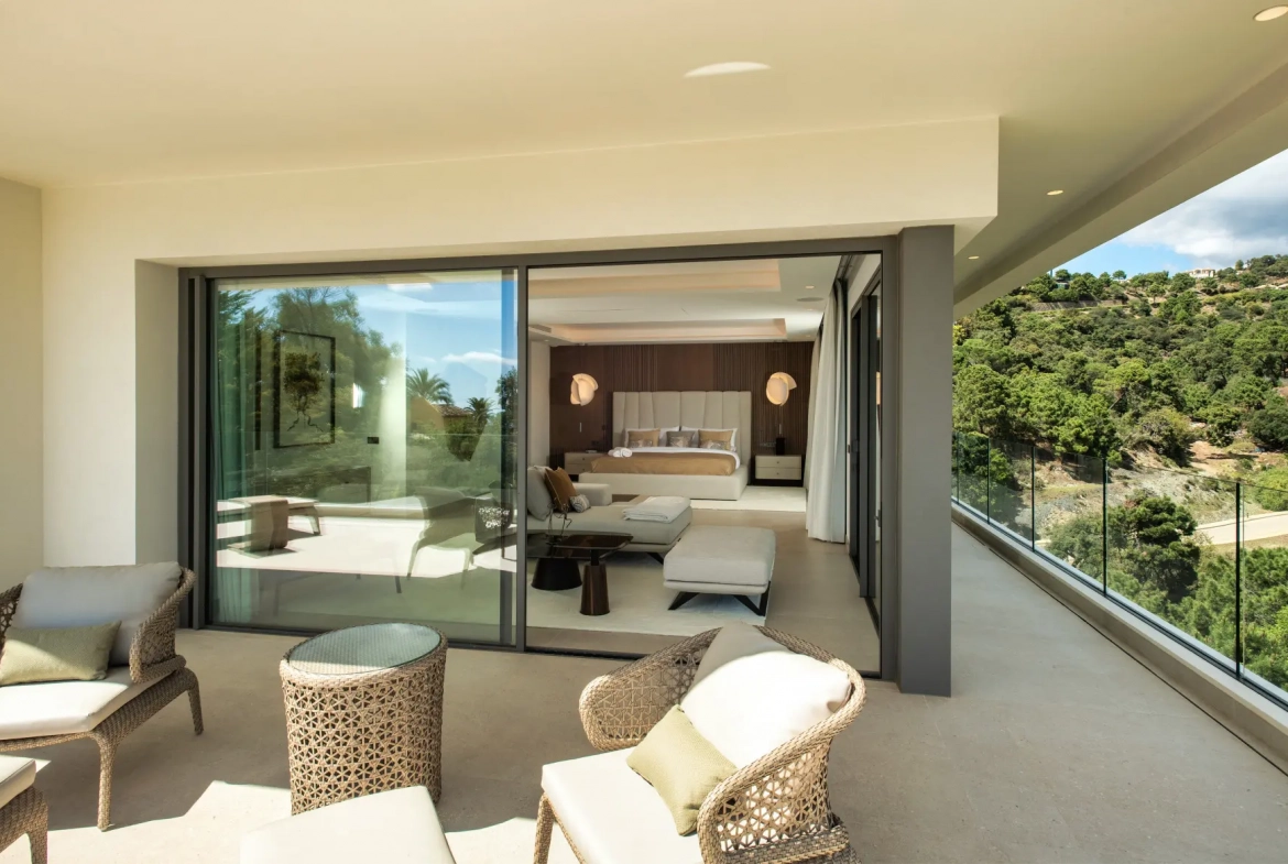 Across a striking glass gallery, the second wing hosts two further guest suites. One of these benefits from a private terrace, thereby enhancing the sense of exclusivity and comfort for visitors. Consequently, the La Zagaleta villa offers ideal accommodation for both family living and guest hosting.
