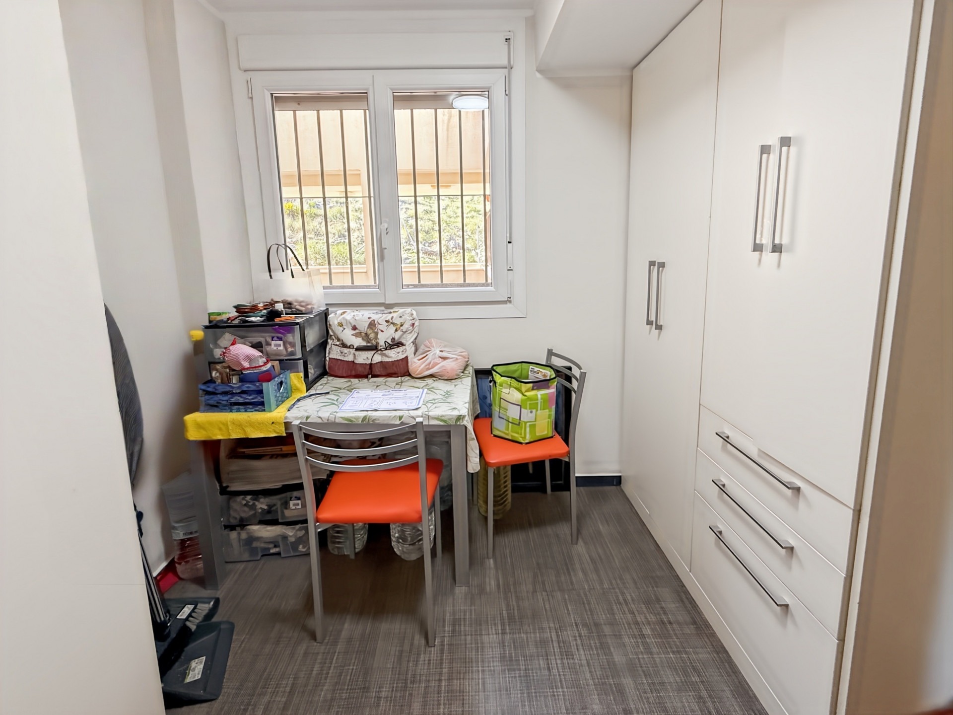 Inside, a bright south-facing living room opens onto a terrace with open sea views, creating a seamless indoor-outdoor connection. The fully equipped kitchen is complemented by a separate dining room, originally designed as a bedroom and easily convertible back if required.