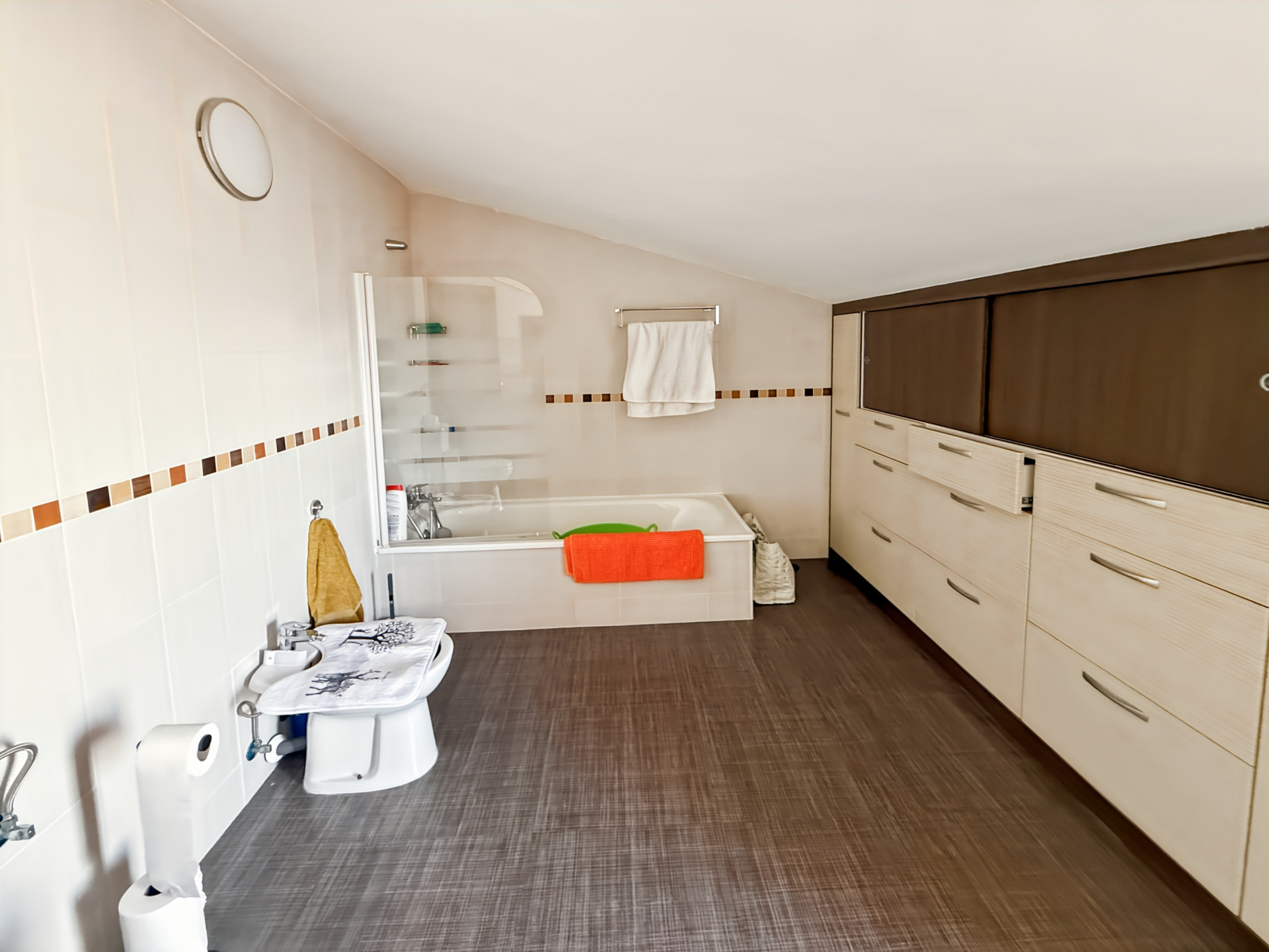 This level also includes one bedroom, a full bathroom, and a practical storage room.