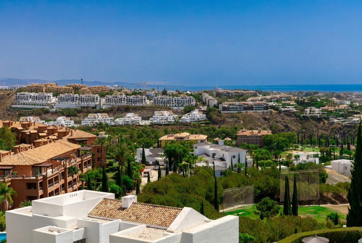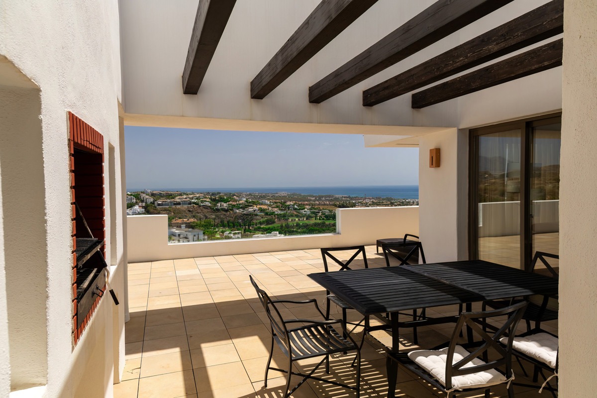 With a generous 220.77 m² of interior space and an expansive 95.62 m² terrace, the property offers spectacular panoramic views of the Mediterranean Sea, golf courses, and surrounding mountains. The terrace creates the perfect setting for relaxing, entertaining, or enjoying the natural beauty of the Costa del Sol.