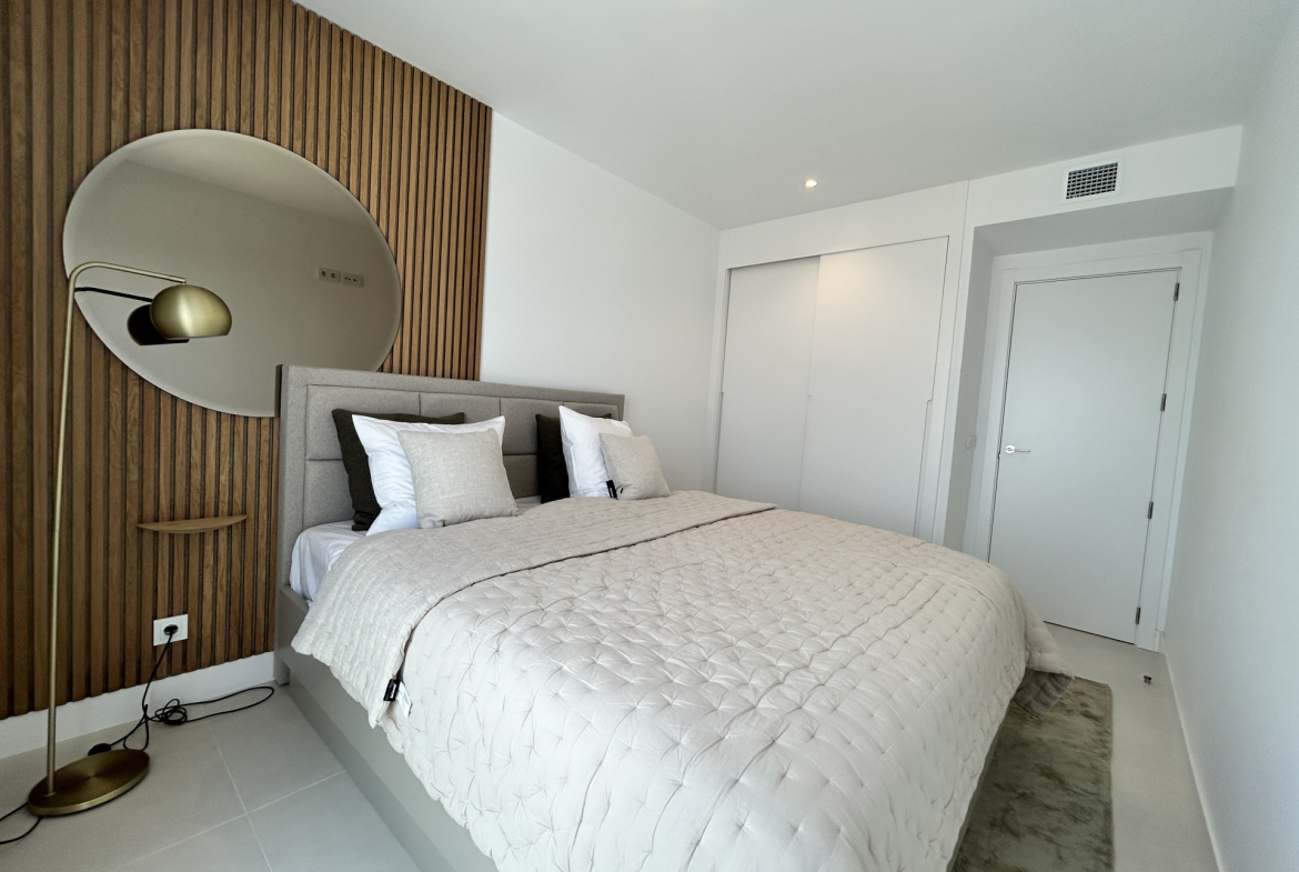 The property includes a spacious private terrace designed for year-round enjoyment of the Mediterranean climate, with panoramic sea views enhancing the outdoor experience.