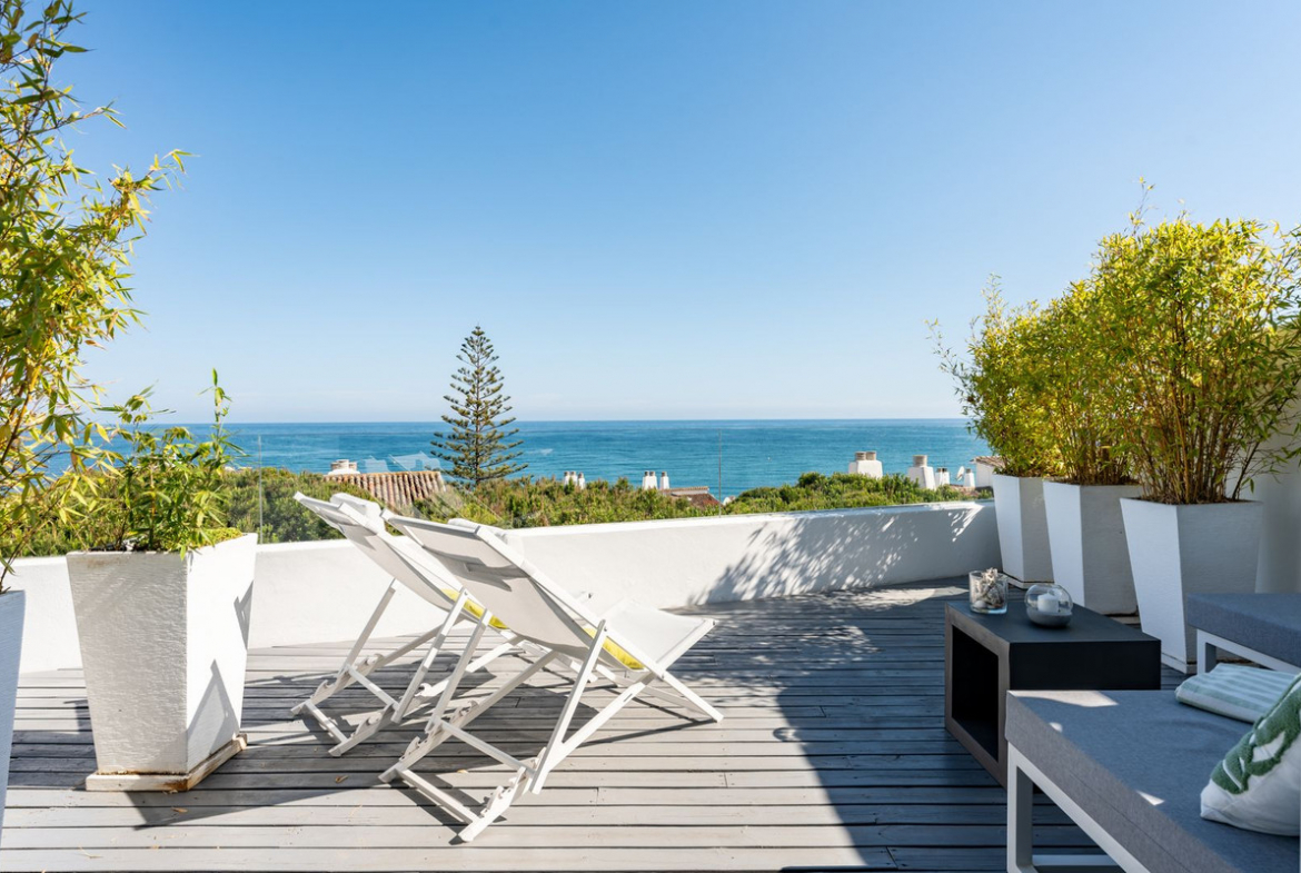 Discover this spacious and unique two-bedroom duplex penthouse located just steps from the beach in Calahonda. Designed to maximise breathtaking sea views from almost every room, this home offers a perfect blend of modern living and coastal charm.