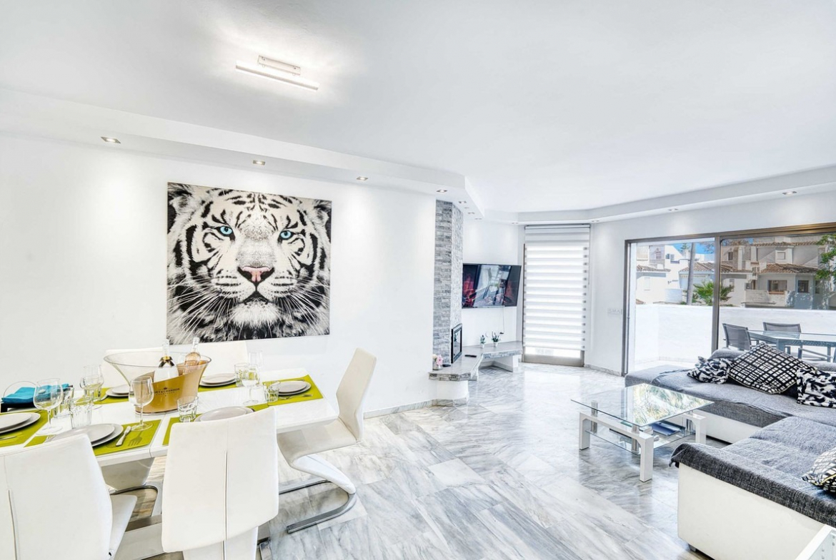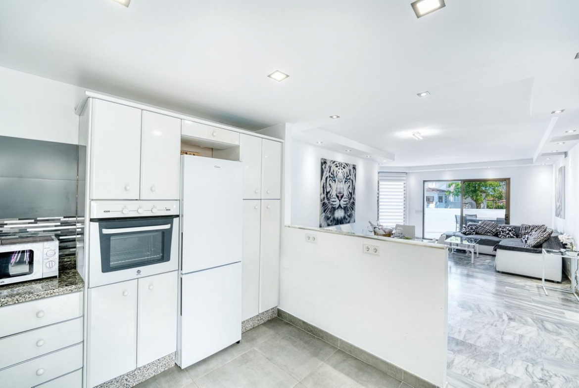 Within walking distance, you will find beach clubs such as Estrella del Mar Beach Club, restaurants, cafés, supermarkets, pharmacy, and public transport. Marbella centre is just 8 km away, while Puerto Banús is only 12 km away.