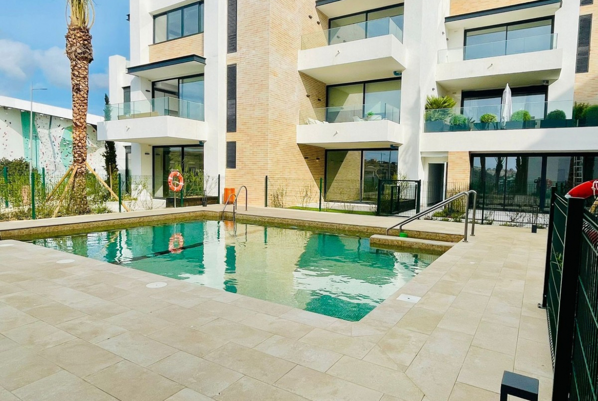 The residence is set within beautifully maintained communal gardens with large green areas and swimming pools, creating a peaceful and resort-like environment.