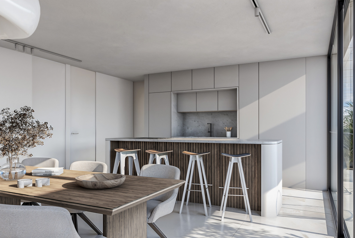 The penthouse features a bright and functional layout with a fully equipped kitchen and modern finishes throughout.