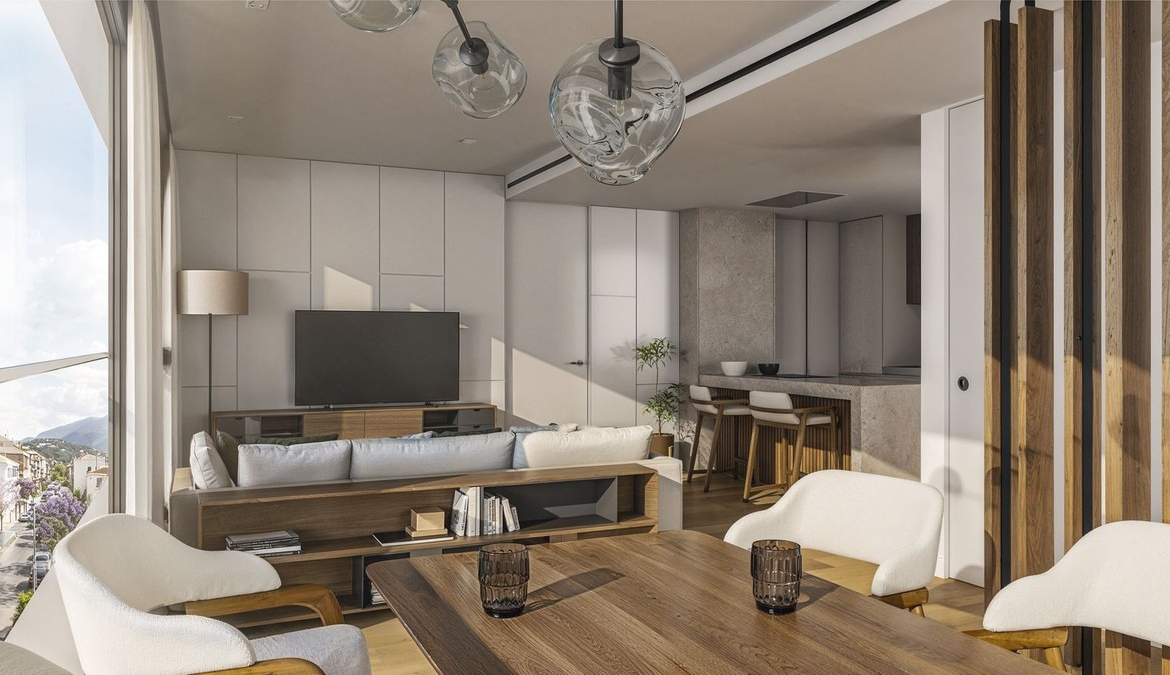 The penthouse features a bright and spacious open-plan living area, designed to maximise natural light and comfort.