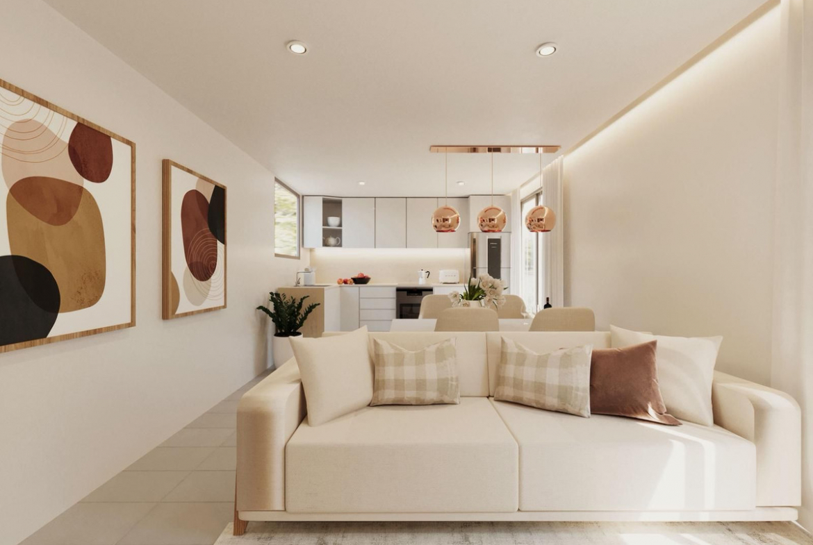 - Bright open-plan living and dining area