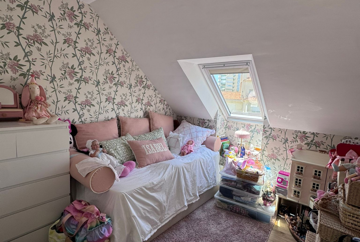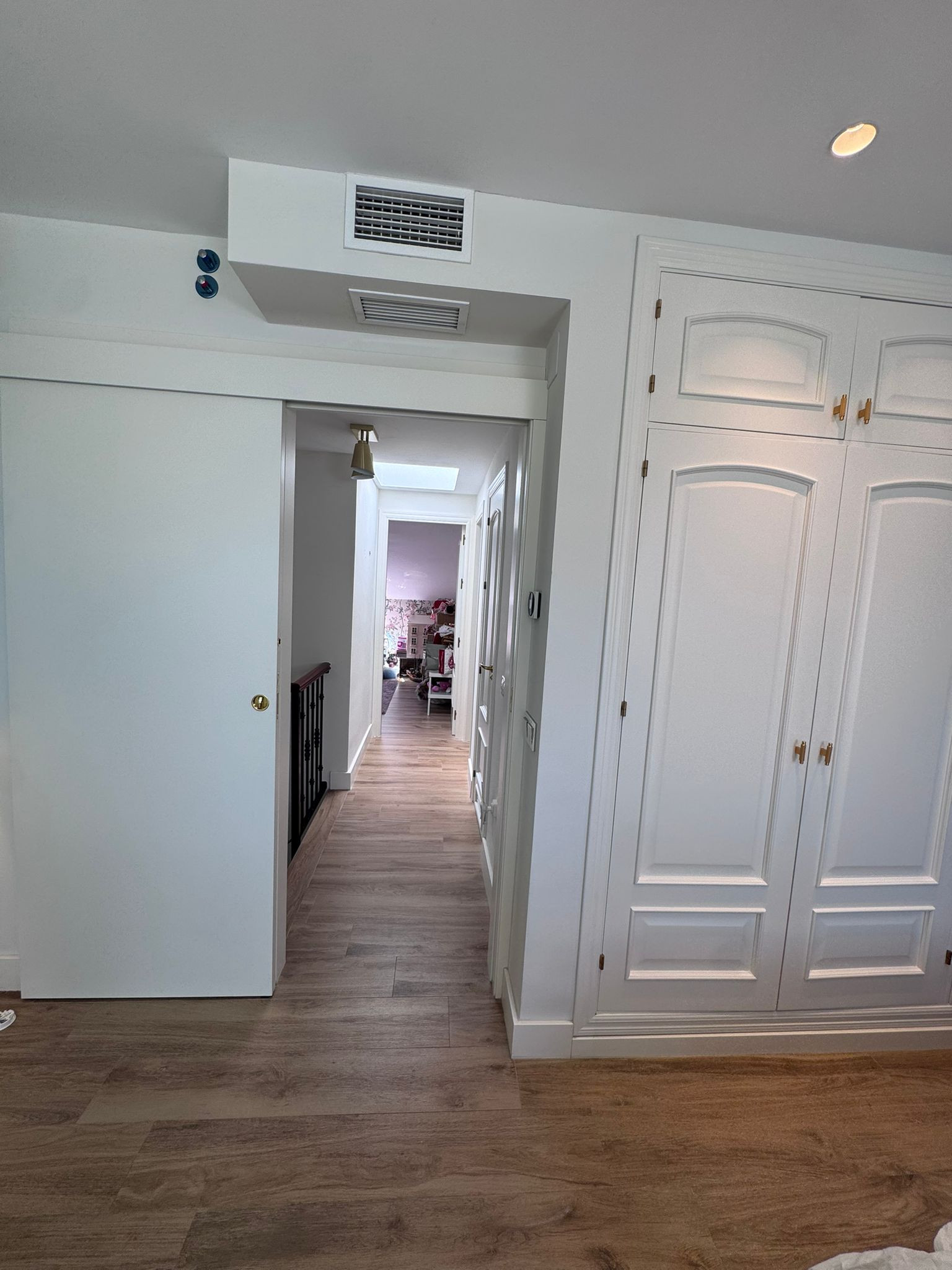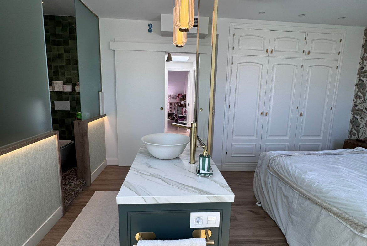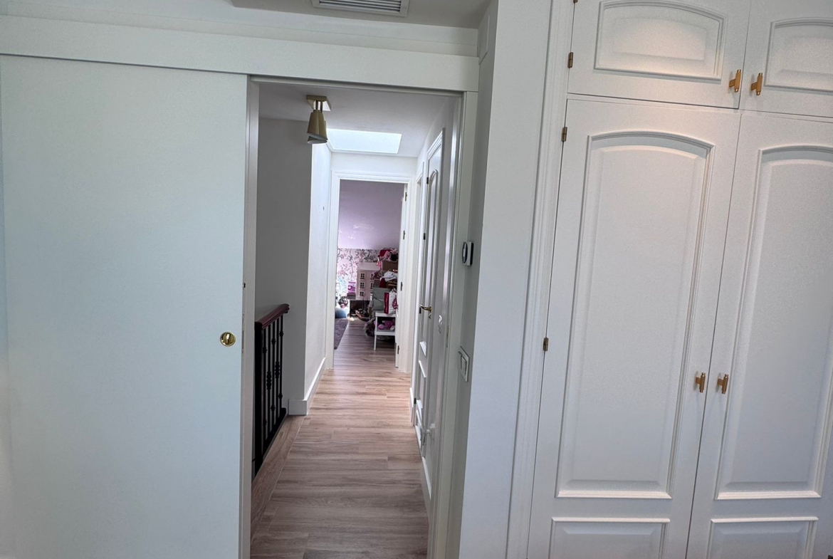The property is distributed over two levels, providing a functional and comfortable layout. The upper floor features three exterior bedrooms, all equipped with new built-in wardrobes, including one with a walk-in closet. This level also includes two recently renovated bathrooms finished with high-end materials and elegant design.