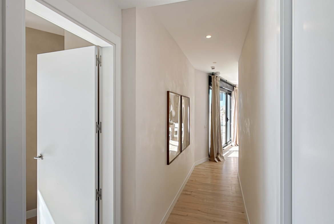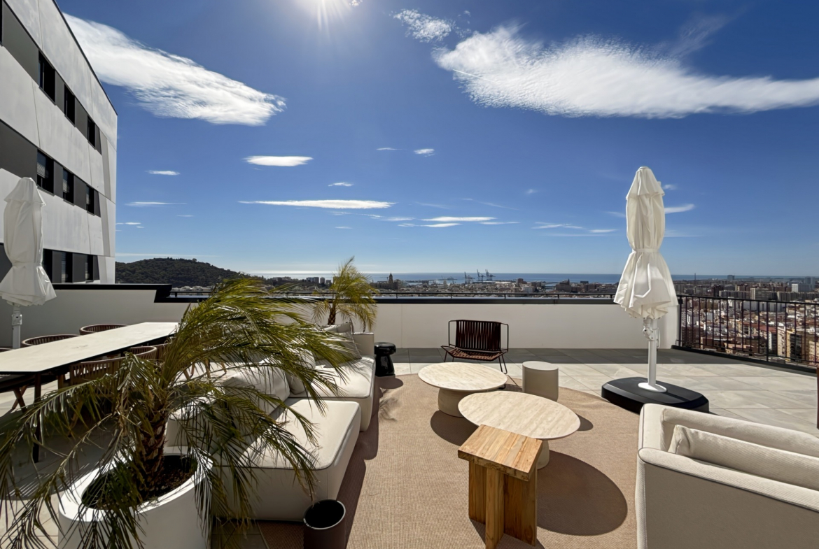 The penthouse boasts two private terraces totaling over 112 m². The main 100 m² terrace offers breathtaking panoramic views of Málaga, including the Cathedral, port, and the Mediterranean Sea, while the second terrace provides additional outdoor space with views over the western part of the city.