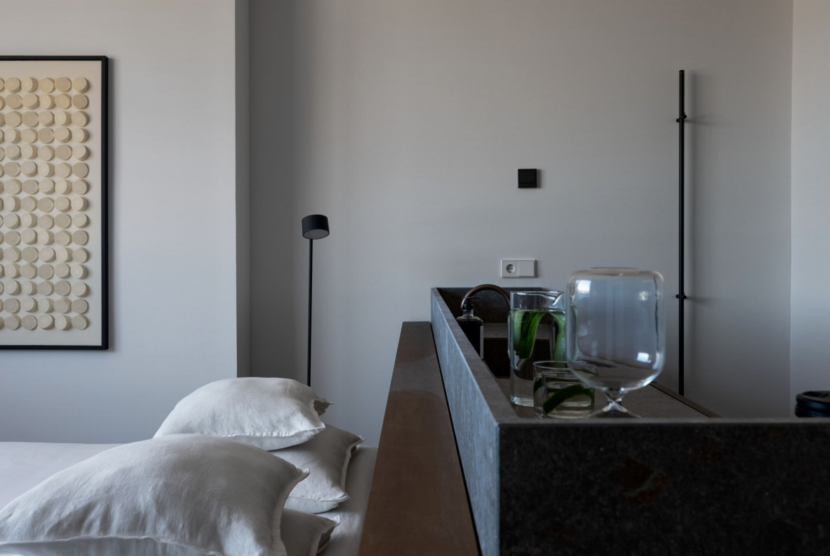 The seamless connection between indoor and outdoor spaces is enhanced by a generous 64 m² terrace, providing the ideal setting for relaxation, entertaining, and enjoying the Mediterranean climate.