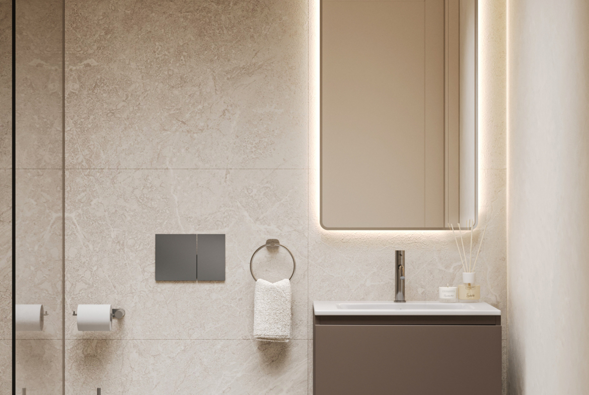 Interiors are finished with high-quality materials and premium European appliances, offering both elegance and practicality.