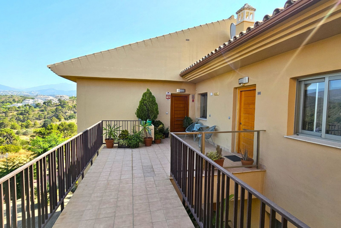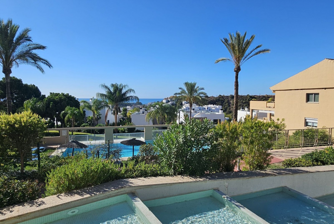 This spacious and bright 2-bedroom penthouse is located in the sought-after La Resina area of Estepona, set within a golf course environment. Positioned in an elegant gated community, the property offers tranquillity, beautiful surroundings, and stunning views of the sea, mountains, and golf.