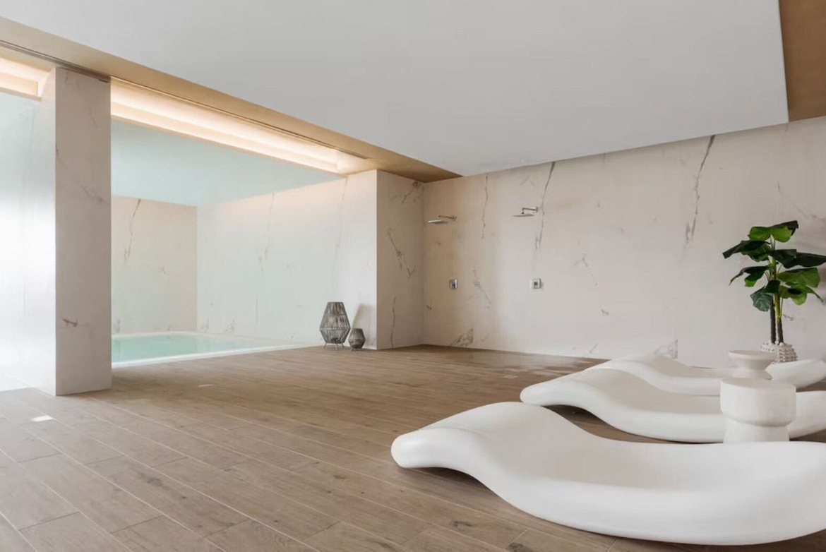 A standout feature is the expansive private rooftop solarium, complete with a jacuzzi and offering breathtaking 360-degree panoramic views of the sea and surrounding mountains.