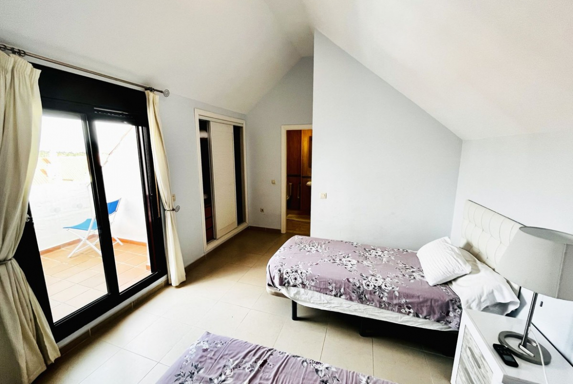 Upstairs, the guest bedroom features a private balcony with beautiful views of La Concha mountain, offering a peaceful and private setting.