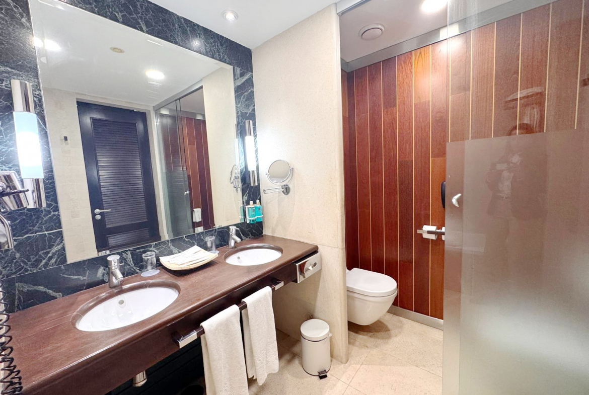 The penthouse is formed by combining a room and a suite, creating a versatile and spacious layout.