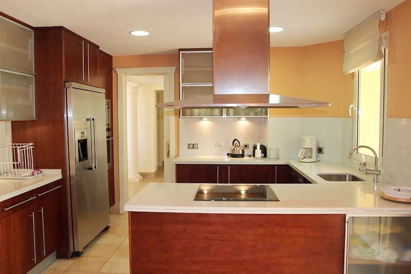 A modern fully fitted kitchen with Siemens appliances offers both style and functionality, with direct access to an additional terrace overlooking La Concha mountain.