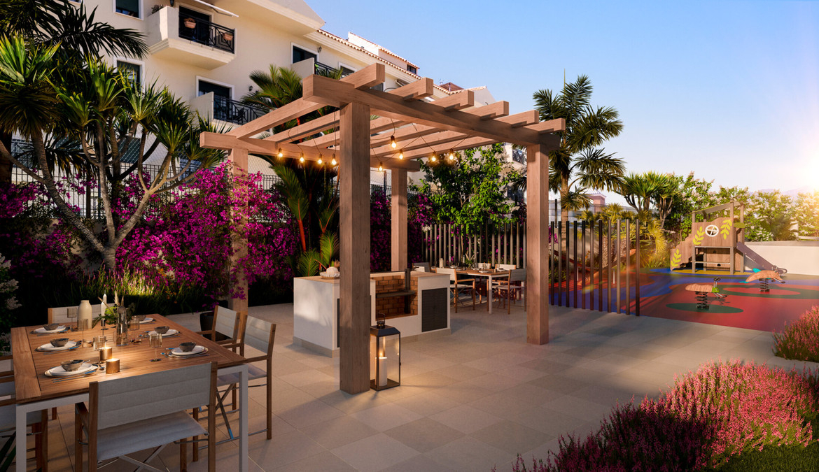 Residents will benefit from a wide range of communal facilities designed for leisure and relaxation. The development includes beautifully landscaped gardens, two swimming pools, a children’s play area, a barbecue area, and a coworking space.