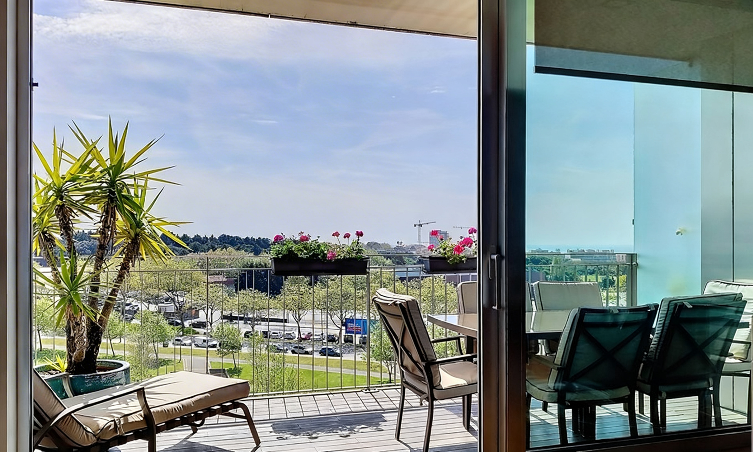 Upon entering, you find a spacious entrance hall with a guest bathroom. From here, the main living room opens onto a balcony. Therefore, it creates the perfect setting for outdoor dining with views of the park and ocean.