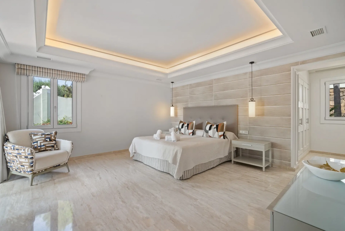 Complementing the main residence, the guest house extends across three levels and has been completely refurbished in 2023 to an exceptional standard. Every bedroom features an en-suite bathroom alongside private terrace or garden access. The main level is entirely dedicated to a luxurious master suite, incorporating a sitting room and walk-in dressing area.
