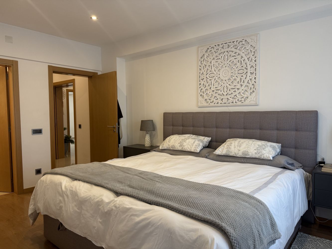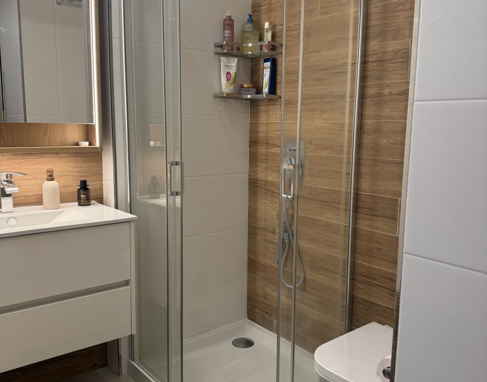 The apartment also features an efficient electric water heating system, while smart glazing and electric thermal blinds help maintain a comfortable indoor temperature throughout the year.