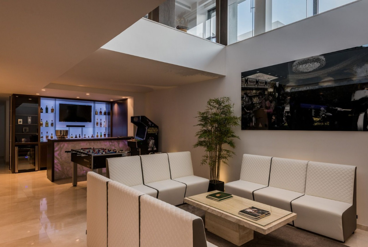 Separate guest/staff apartment with a private terrace, al fresco dining and lounge area, entertainment room, game room, sauna, gymnasium, a private bar, marvellous infinity pool with Jacuzzi and Balinese sun loungers, floral lush garden, private garage for up to seven cars and four golf buggies are completing this luxurious mansion.
