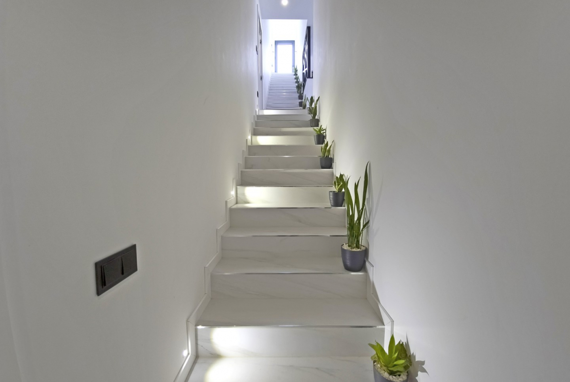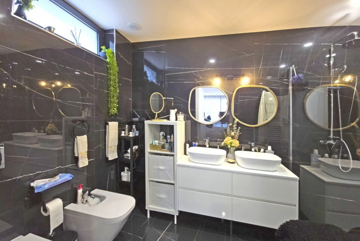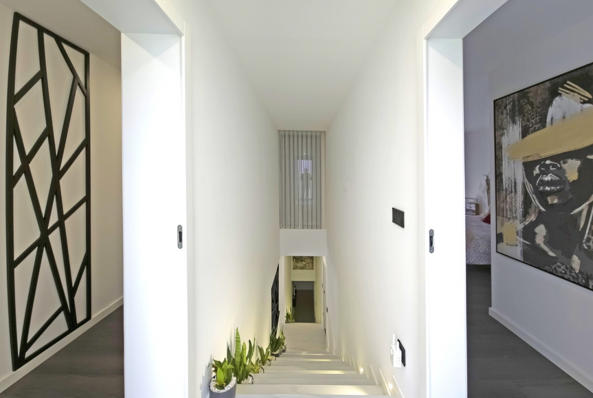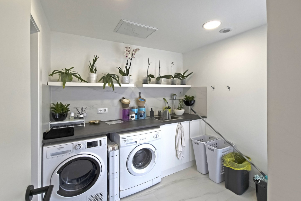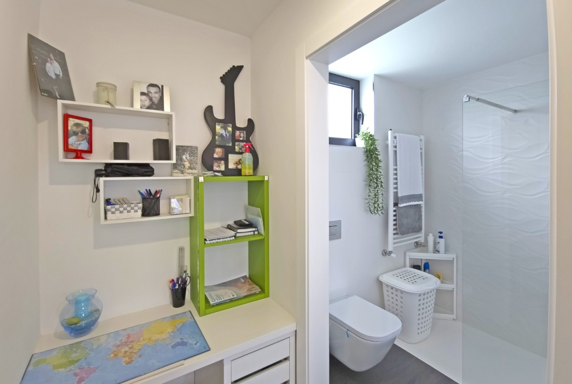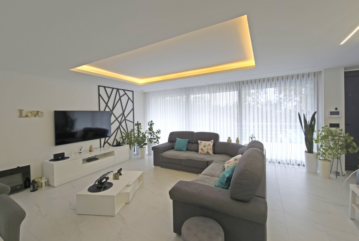 The outdoor areas complement the villa’s modern lifestyle. The property includes a private swimming pool and a beautifully maintained garden. Consequently, residents can fully enjoy outdoor leisure and relaxation. In addition, the generous plot ensures privacy and open space.
