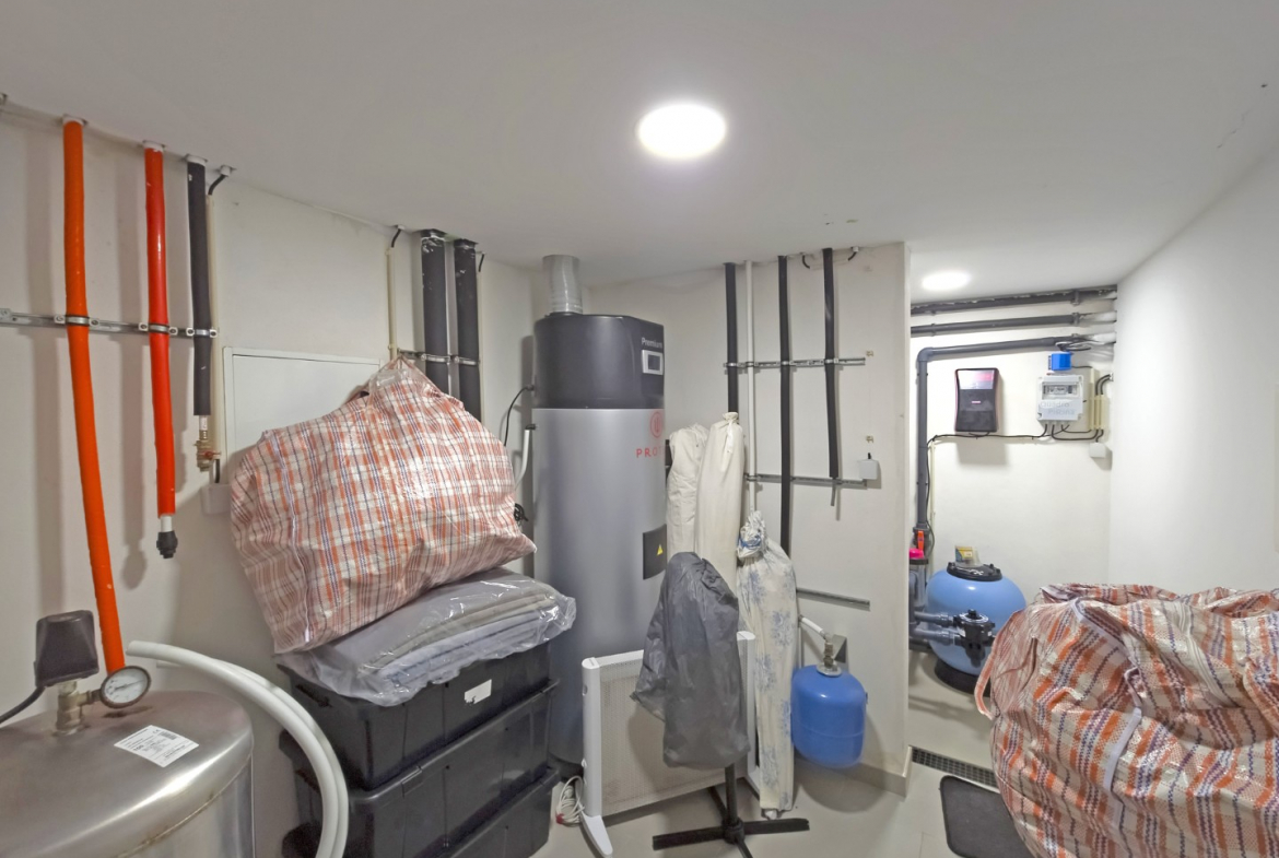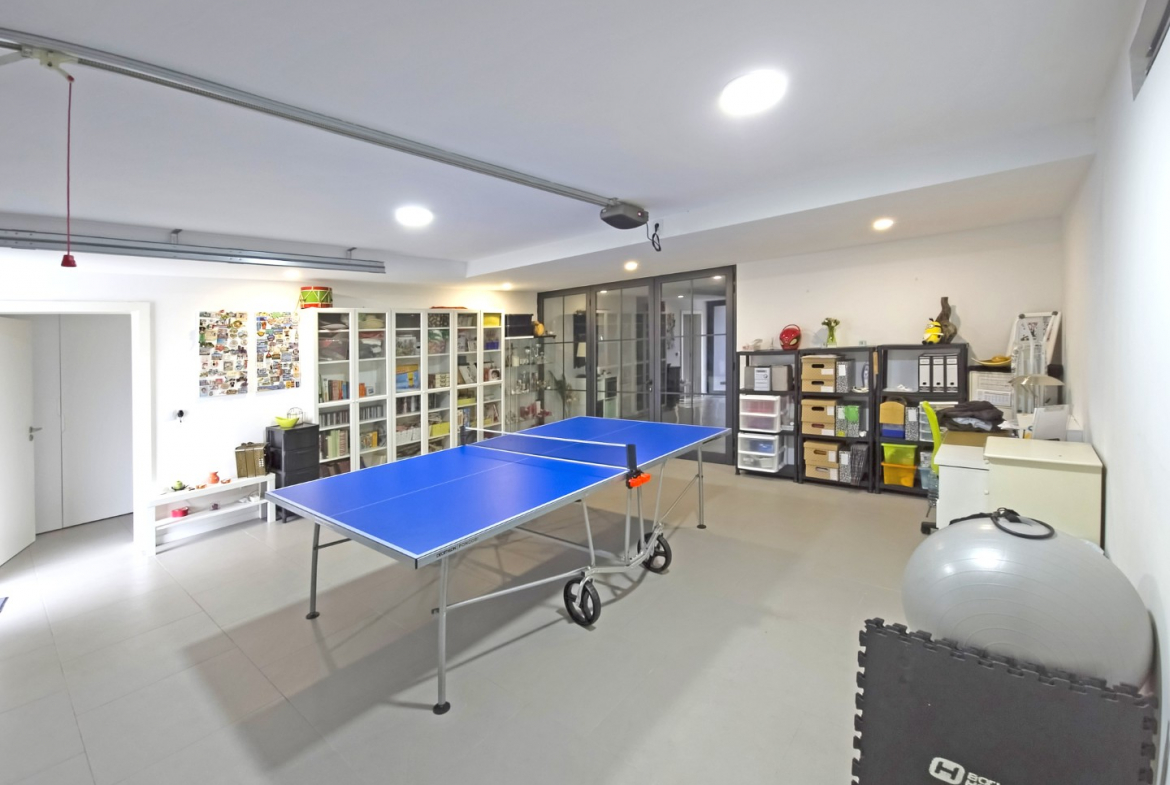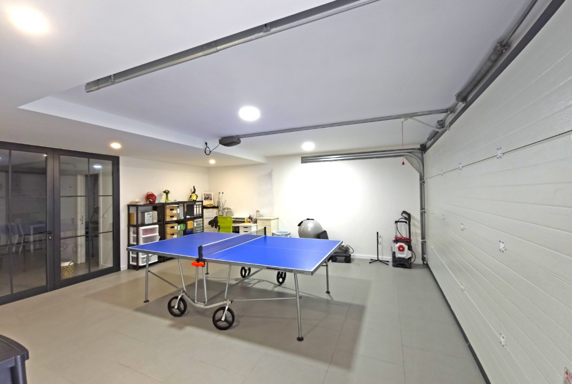 Adjacent to the garage, a superb additional leisure area provides a perfect setting for social gatherings. This space includes a fully equipped kitchen and a well-appointed lounge. As a result, it becomes ideal for entertaining friends and family in complete comfort.
