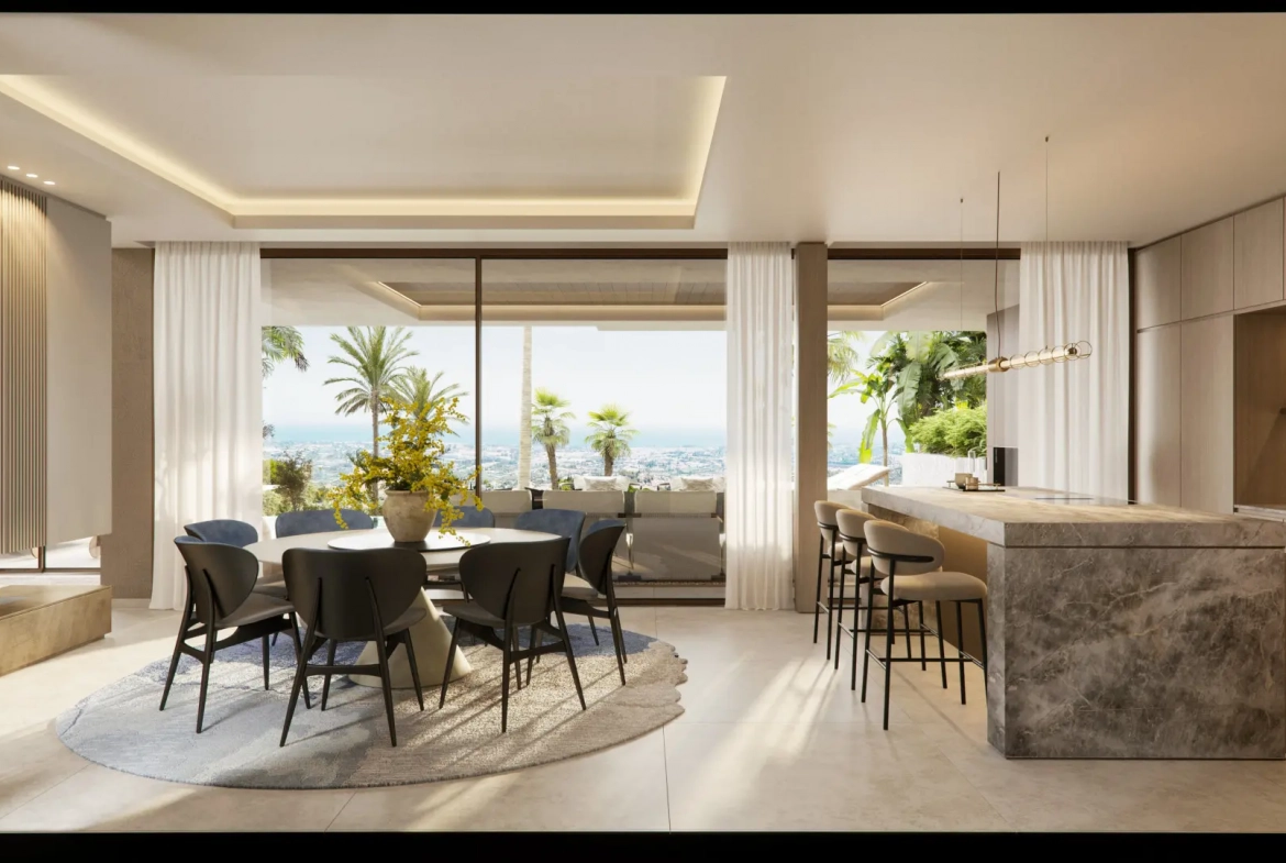 A defining feature of the villas is the bespoke rooftop solarium. These elevated terraces provide panoramic views of the Mediterranean Sea, surrounding mountains, and the natural landscape of Nueva Andalucía. Therefore, residents benefit from private outdoor retreats designed for relaxation and social gatherings.