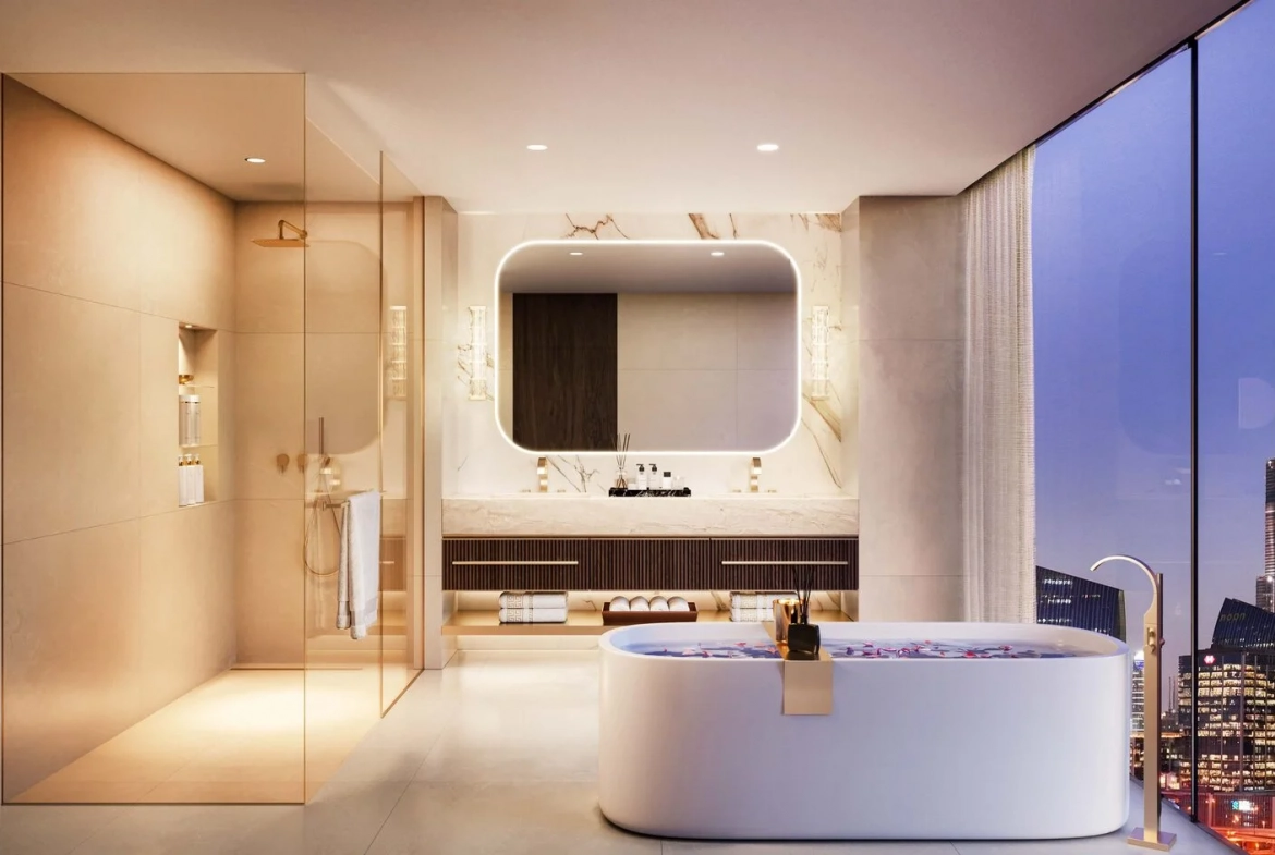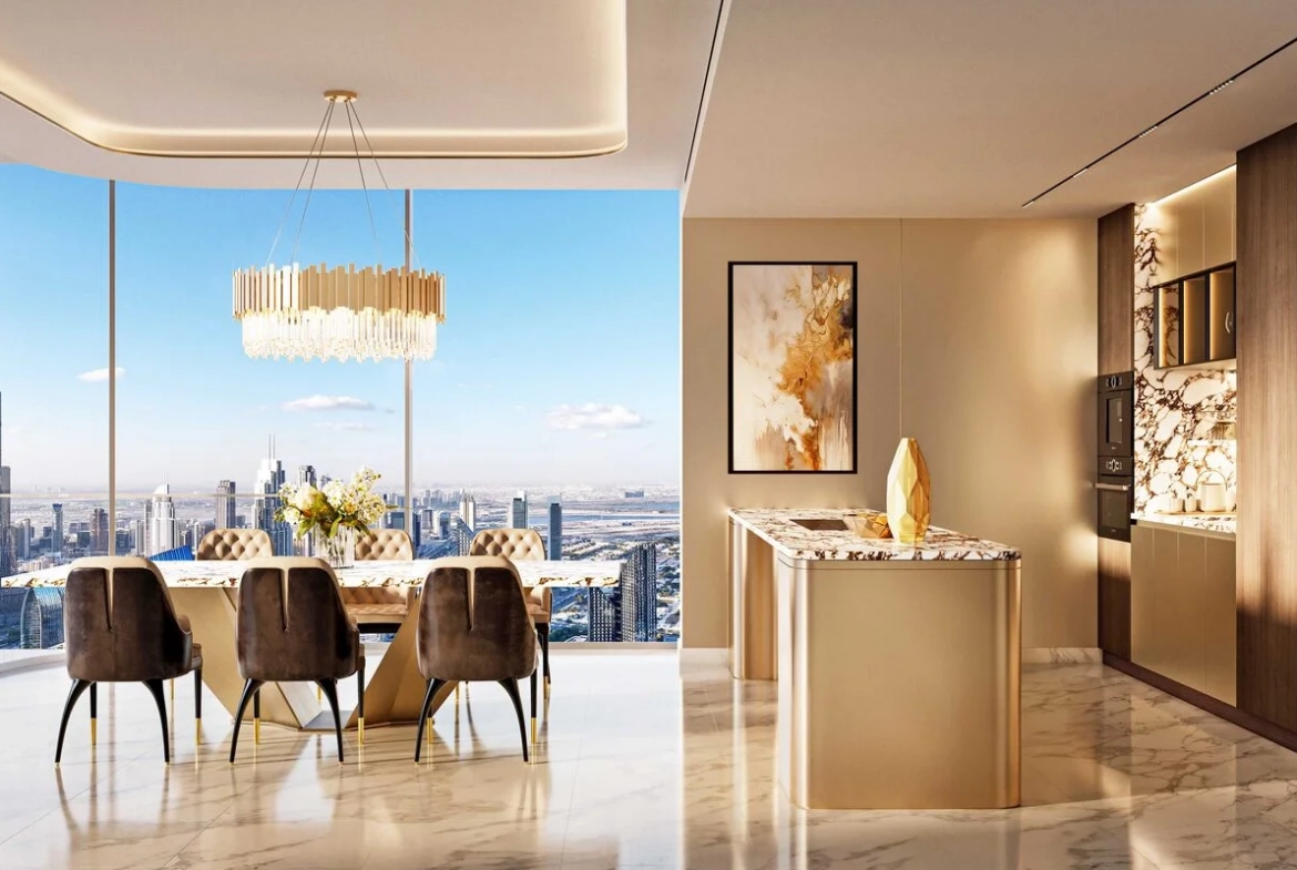 The tower’s architecture expresses confidence, precision, and modern sophistication. Clean vertical lines, expansive glass surfaces, and carefully balanced proportions define its commanding silhouette. Furthermore, every aspect of the design merges form with function, creating a structure that feels both timeless and forward-looking. Floor-to-ceiling windows maximise natural light while framing exceptional views of the skyline and the Arabian Gulf. Consequently, the building establishes itself not merely as a residence, but as a defining architectural statement within Dubai’s evolving cityscape.