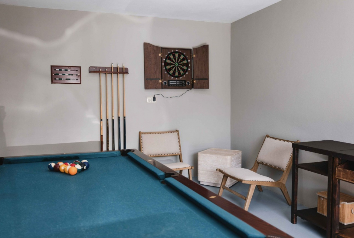 The offers two fully equipped kitchens, making it easy to prepare big feasts or even hire a private chef. With three TV areas, a game room, and a modern gym it is a perfect space to spend time with family and friends.