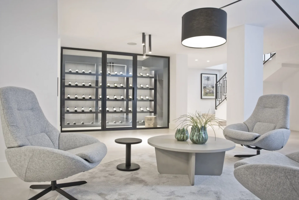 The lower level is dedicated to entertainment and lifestyle features. It includes a leisure area with a pool table, wine cellar, bar, cinema room, and gym.