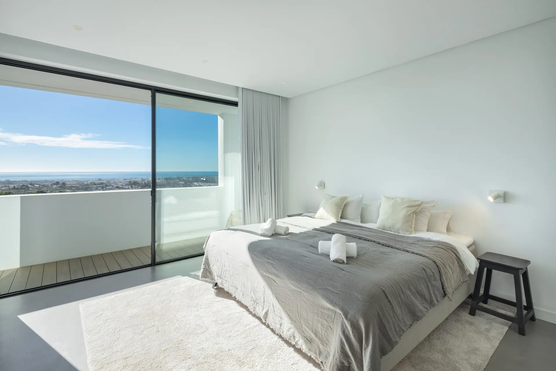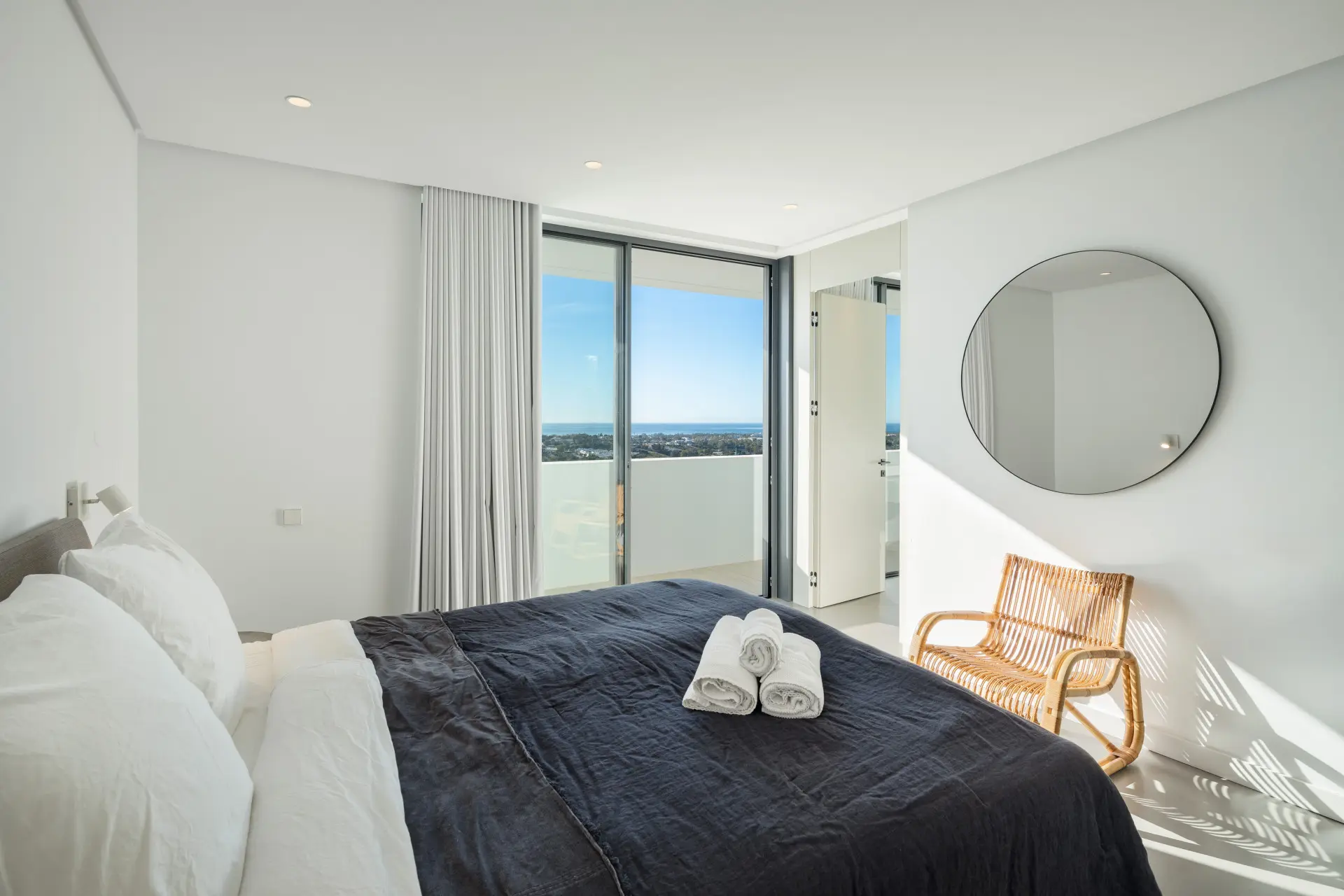 The property comprises four well-proportioned bedrooms, each designed with comfort and privacy in mind. The master suite stands out as a private retreat, offering direct access to its own terrace and elevated views across the sea. Consequently, the sleeping quarters deliver both tranquillity and functionality.