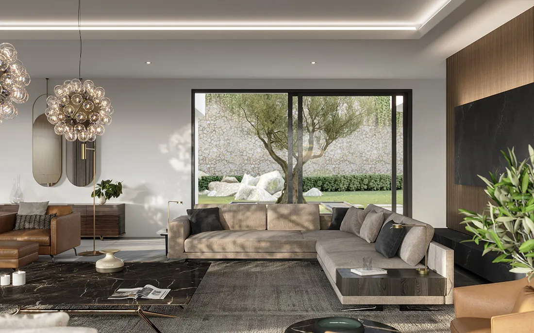 Next to this area, the villa includes a private cinema room. Therefore, residents can relax and enjoy entertainment from the comfort of their own home.