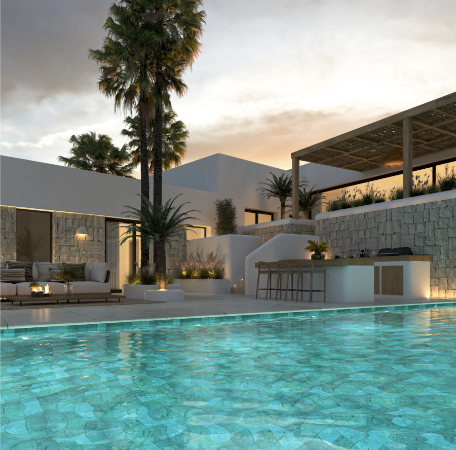 The outdoor areas are designed to fully embrace Mediterranean living. A beautiful private swimming pool offers the perfect place to cool off during sunny days.