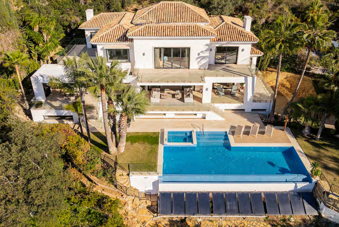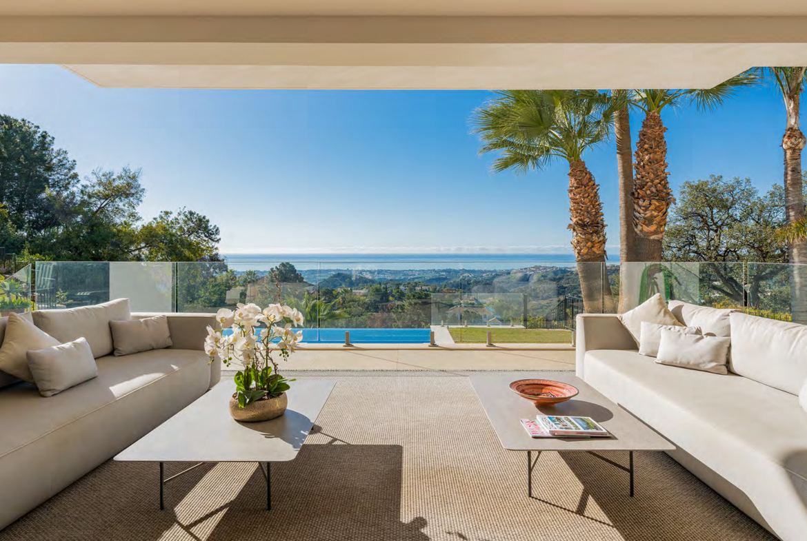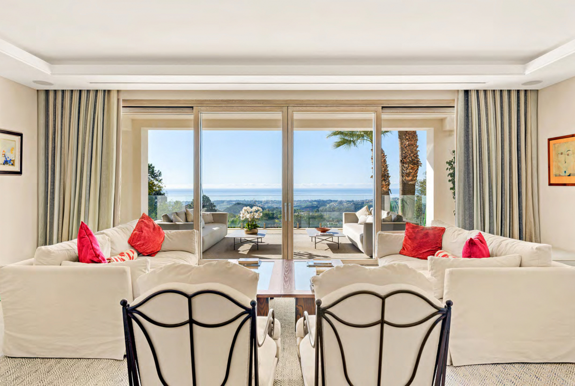 Located in the exclusive gated community of La Zagaleta, this villa enjoys a privileged hillside position. The villa captures breathtaking panoramic sea views that extend across the Mediterranean. From the moment of arrival, the home reveals a strong sense of space and architectural clarity. A striking double-height entrance hall creates an immediate impression of elegance and openness.