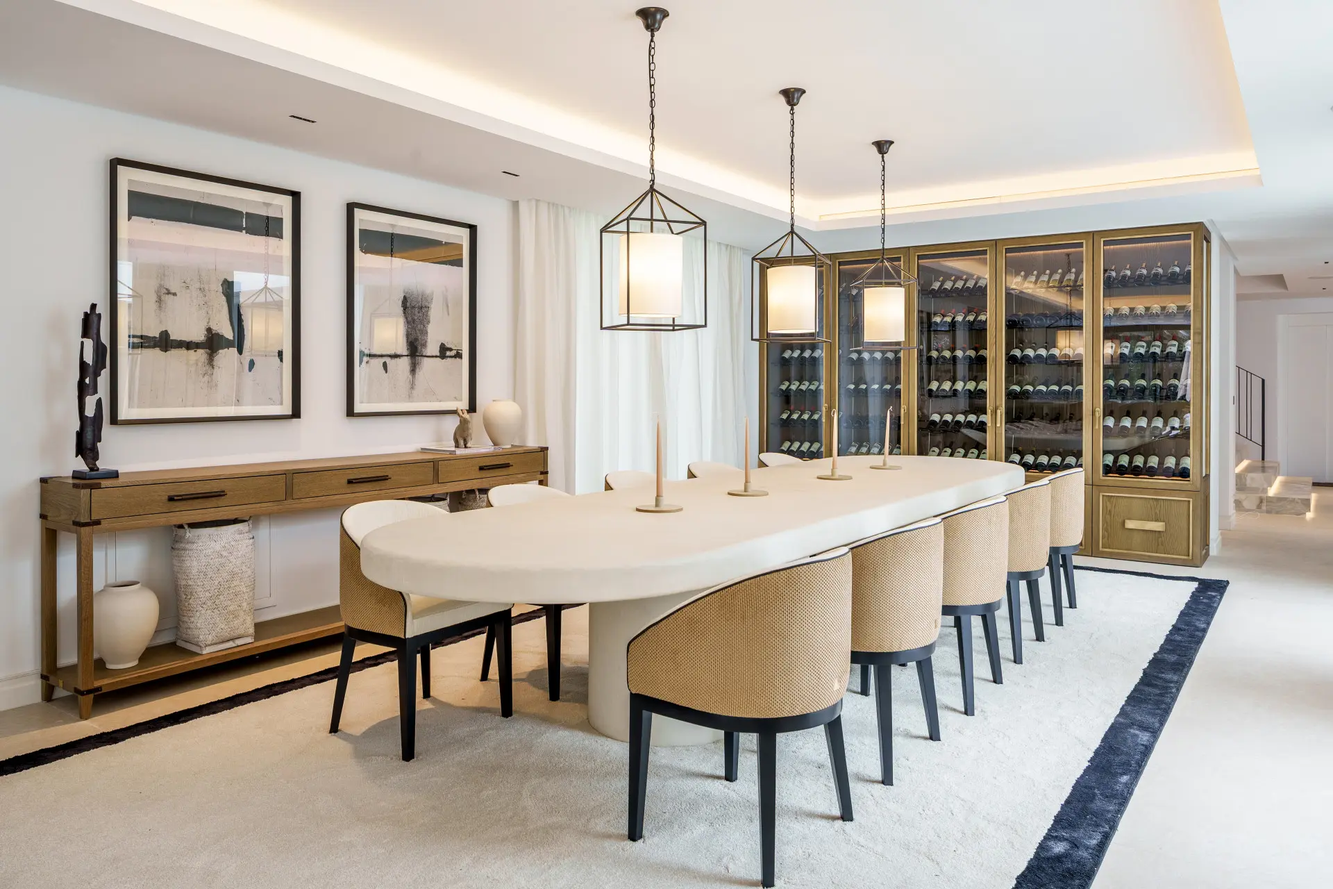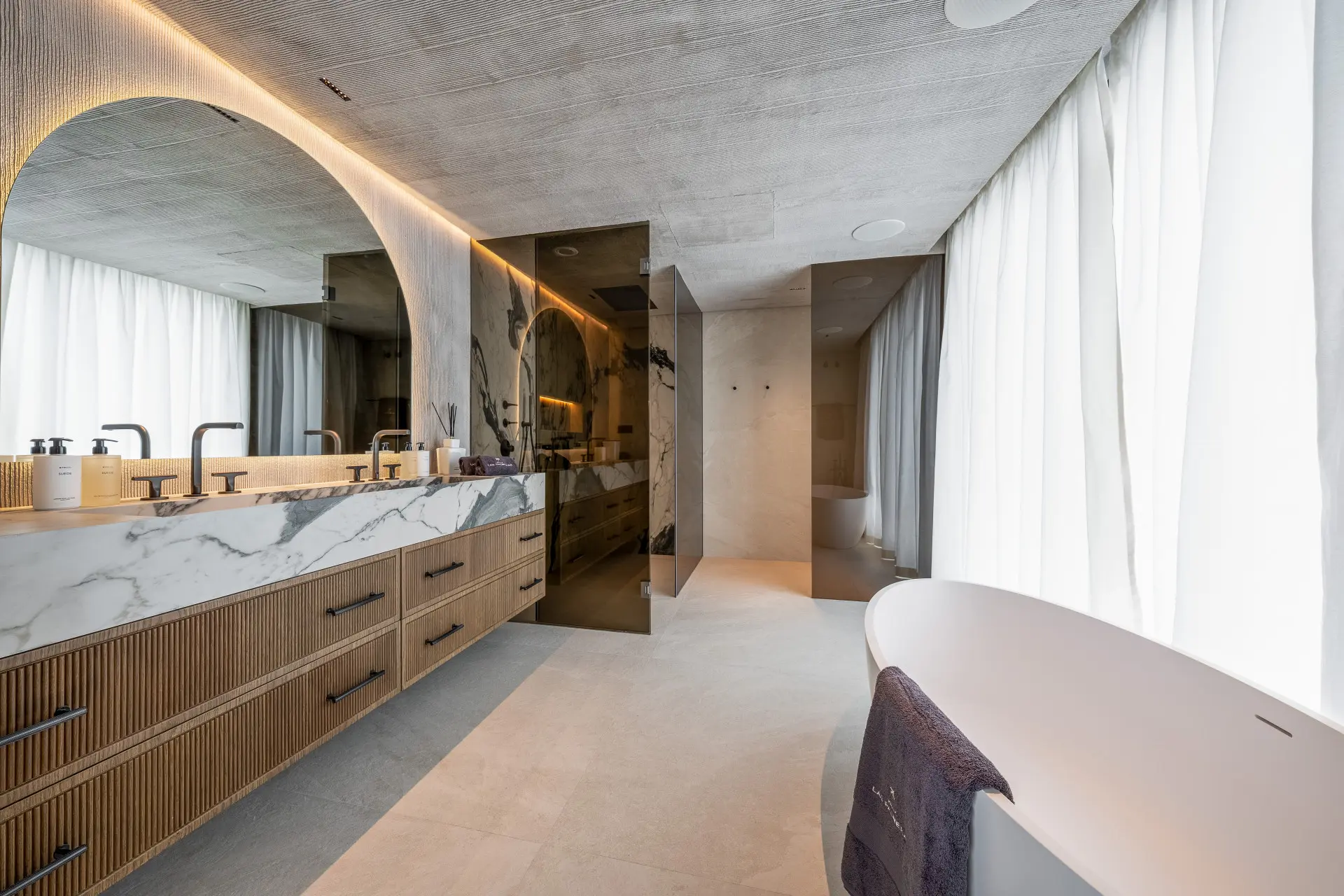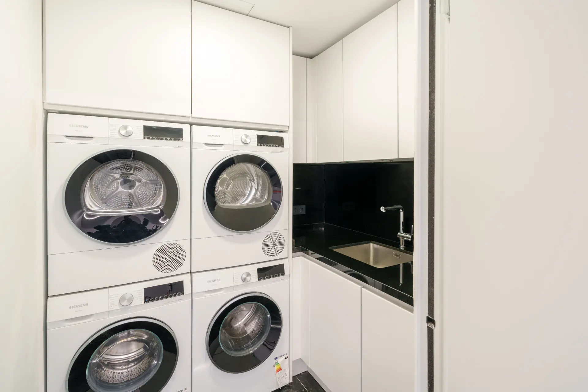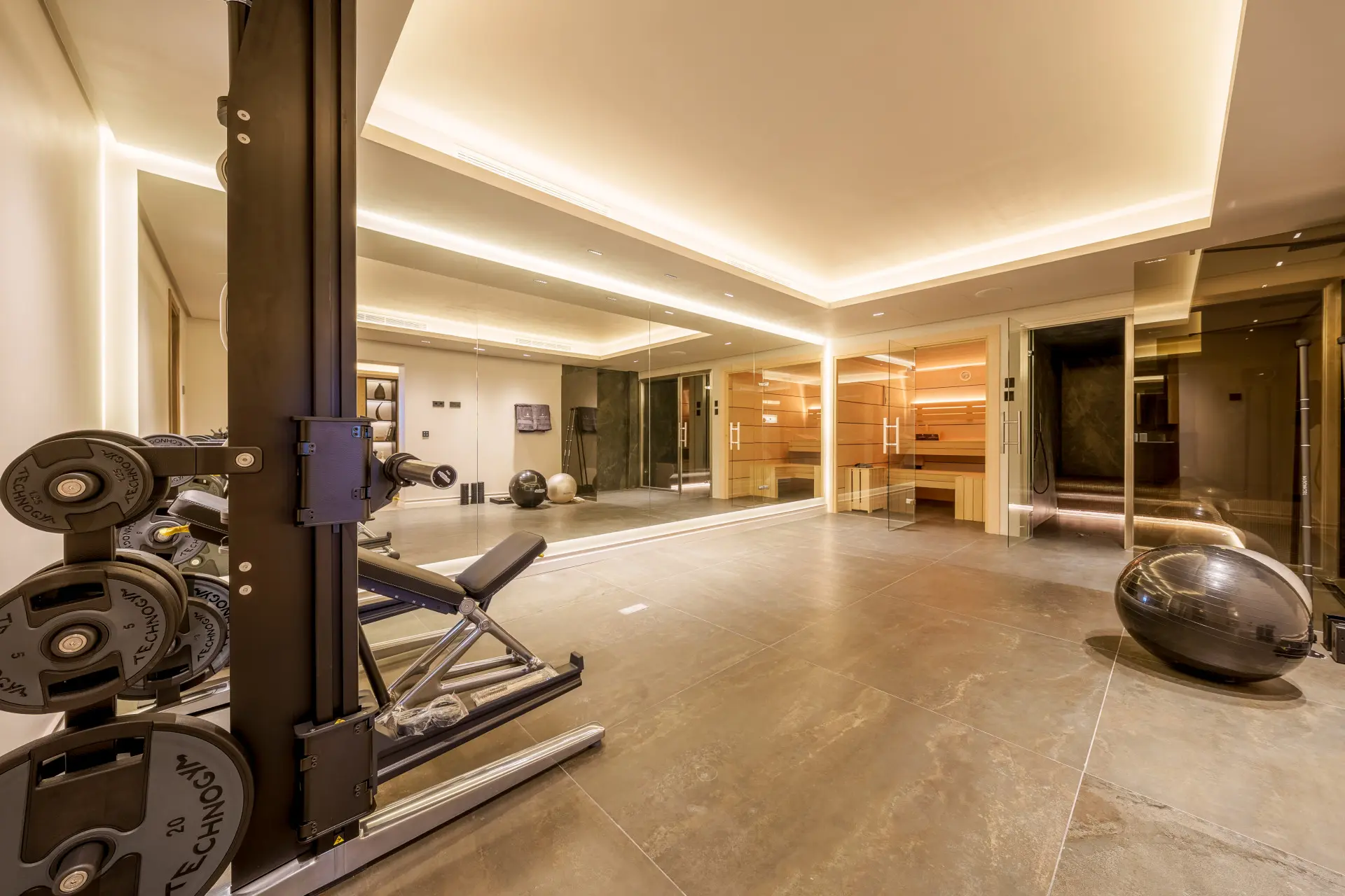 Spread across three floors, the villa features a spacious basement of over 300 m² with 3-meter-high ceilings, providing ample space for entertainment and leisure activities. A host of amenities awaits within, including a large garage, a driveway with a car turning plate, a spa with sauna and steam room, a state-of-the-art indoor gym, and a home cinema – all with direct access to the garden.