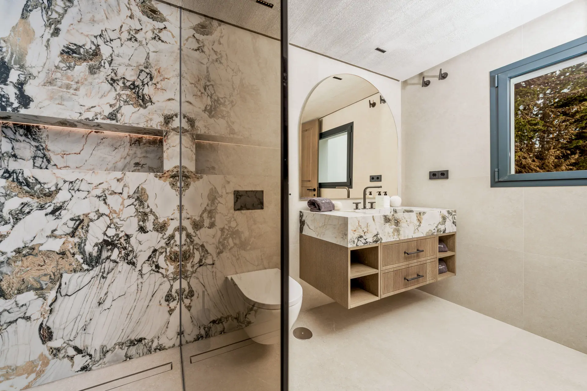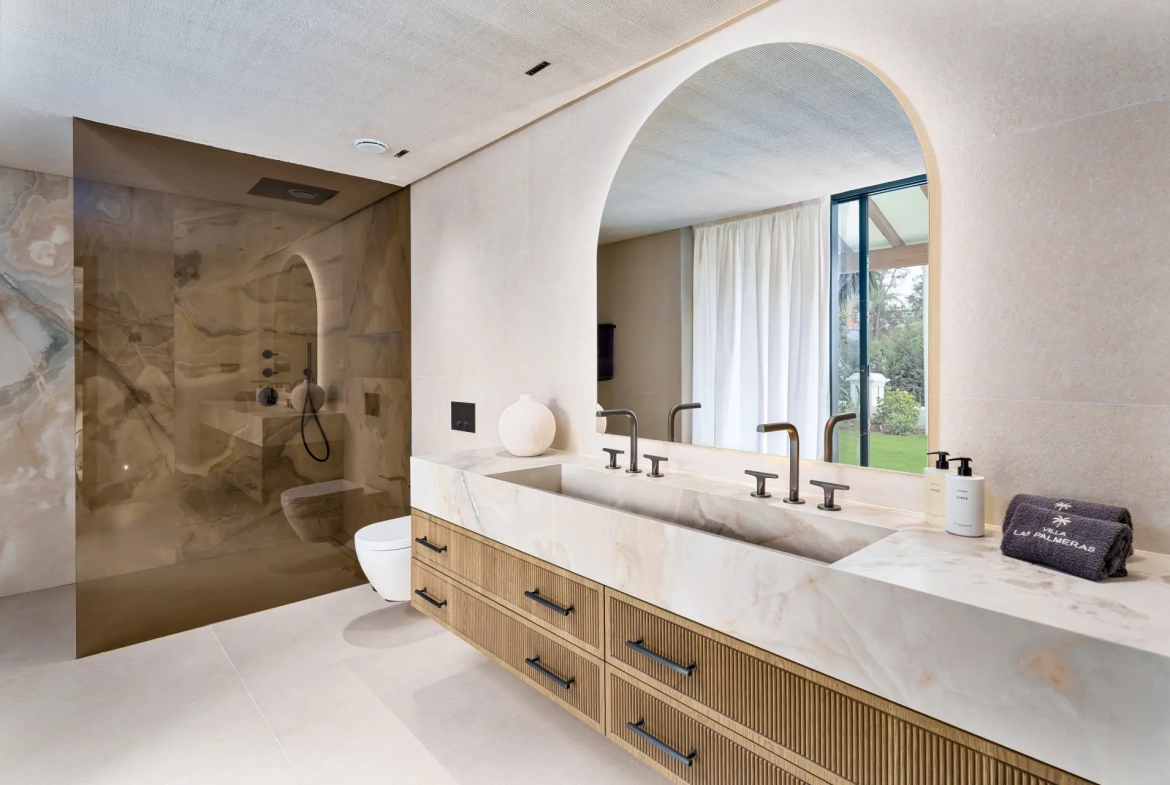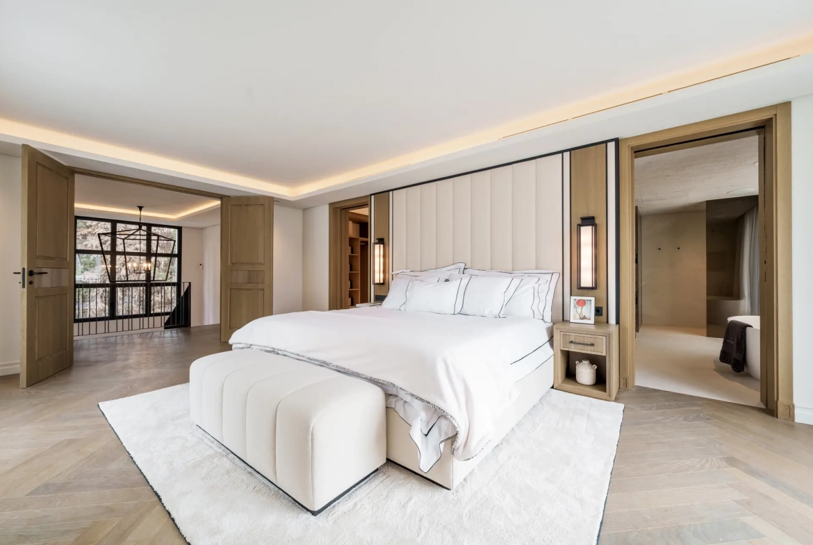 Traditional touches blend seamlessly with modern conveniences, with features such as a patio, an outdoor master shower with views over the golf course, and a separate TV room. Additionally, the villa boasts a rooftop terrace offering panoramic views of the surrounding mountains and countryside.