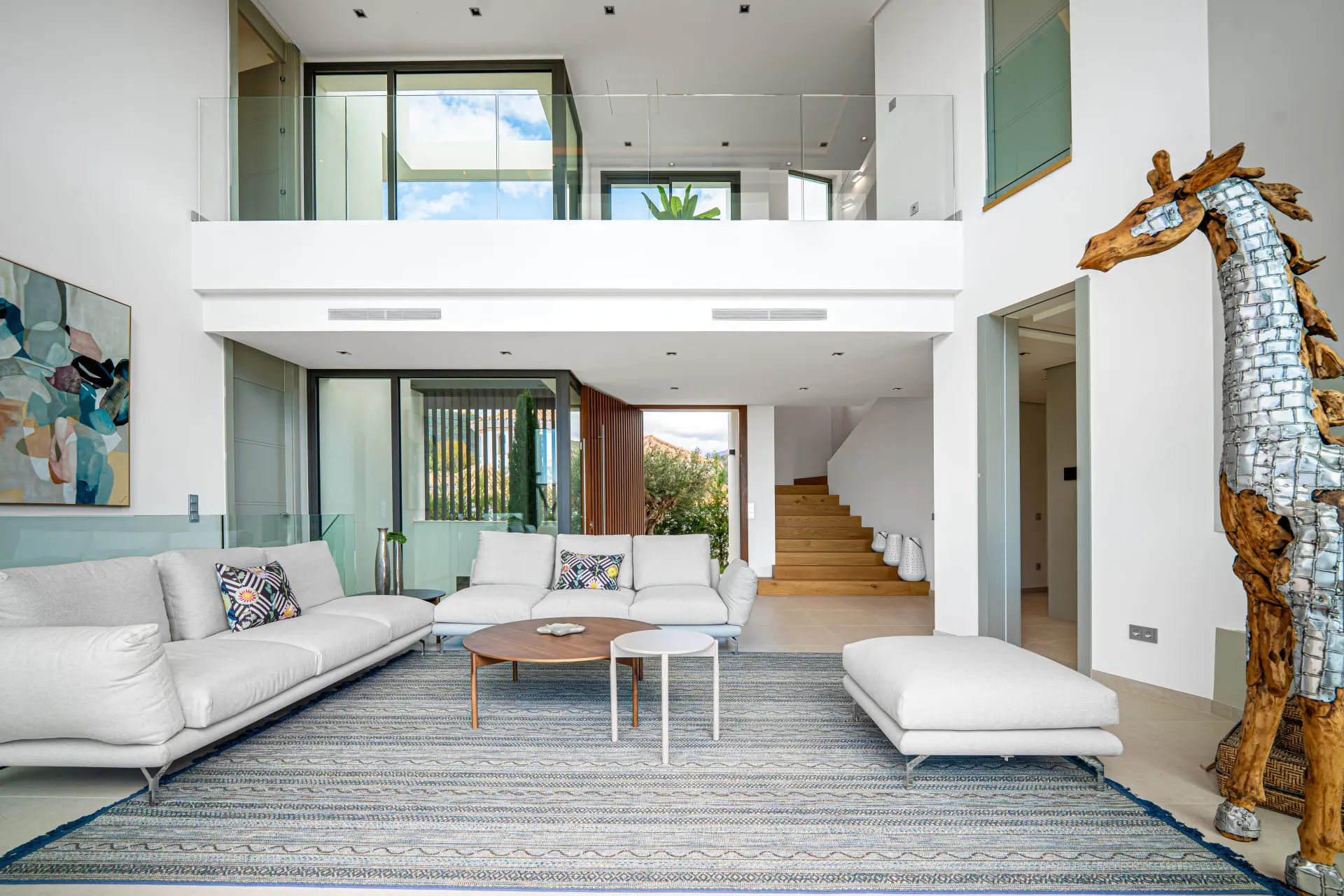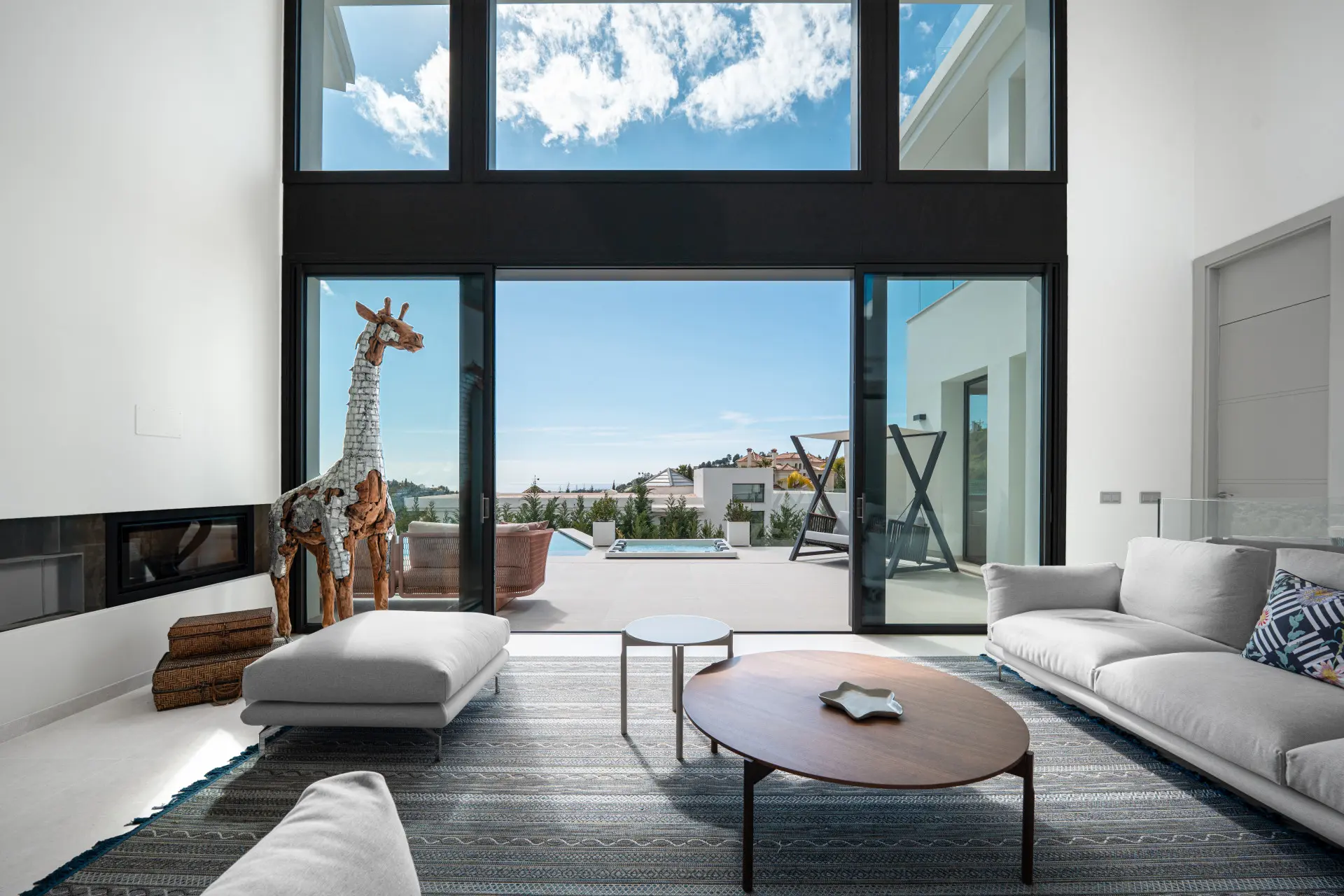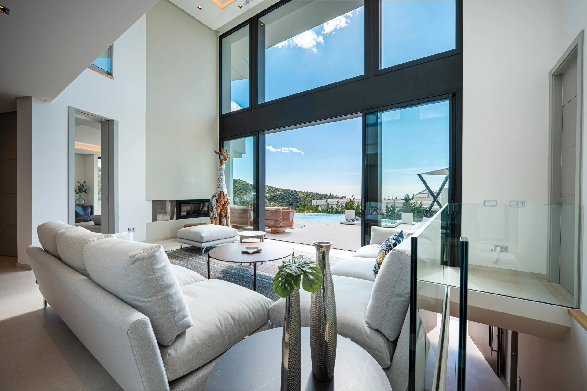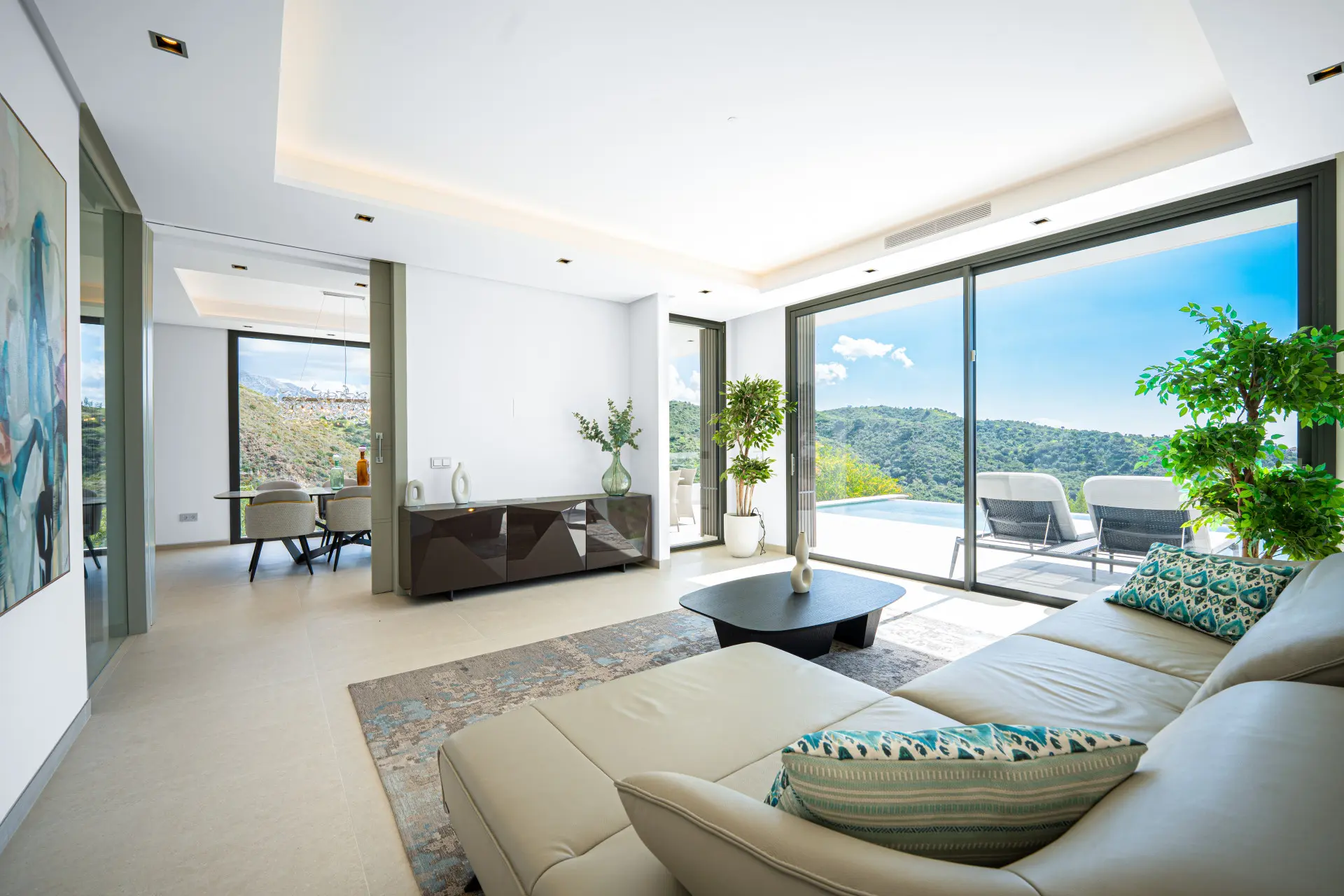 Thanks to its elevated position, the villa enjoys panoramic views of the Mediterranean Sea and the Sierra de las Nieves mountains. The surrounding natural landscape further enhances the sense of serenity and privacy.