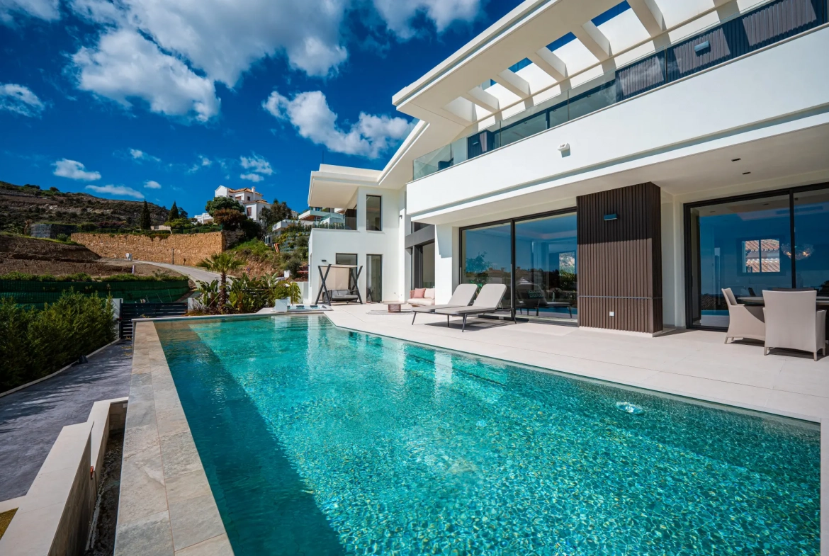 Situated within the secure gated community of Lomas de La Quinta, this modern six-bedroom villa offers a refined living environment defined by privacy, views, and contemporary design. Positioned just before the emerging Real de La Quinta development, the property benefits from a highly desirable setting known for its tranquility and exclusivity. Consequently, this location continues to attract discerning buyers seeking a peaceful residential atmosphere while remaining close to Marbella’s key destinations.