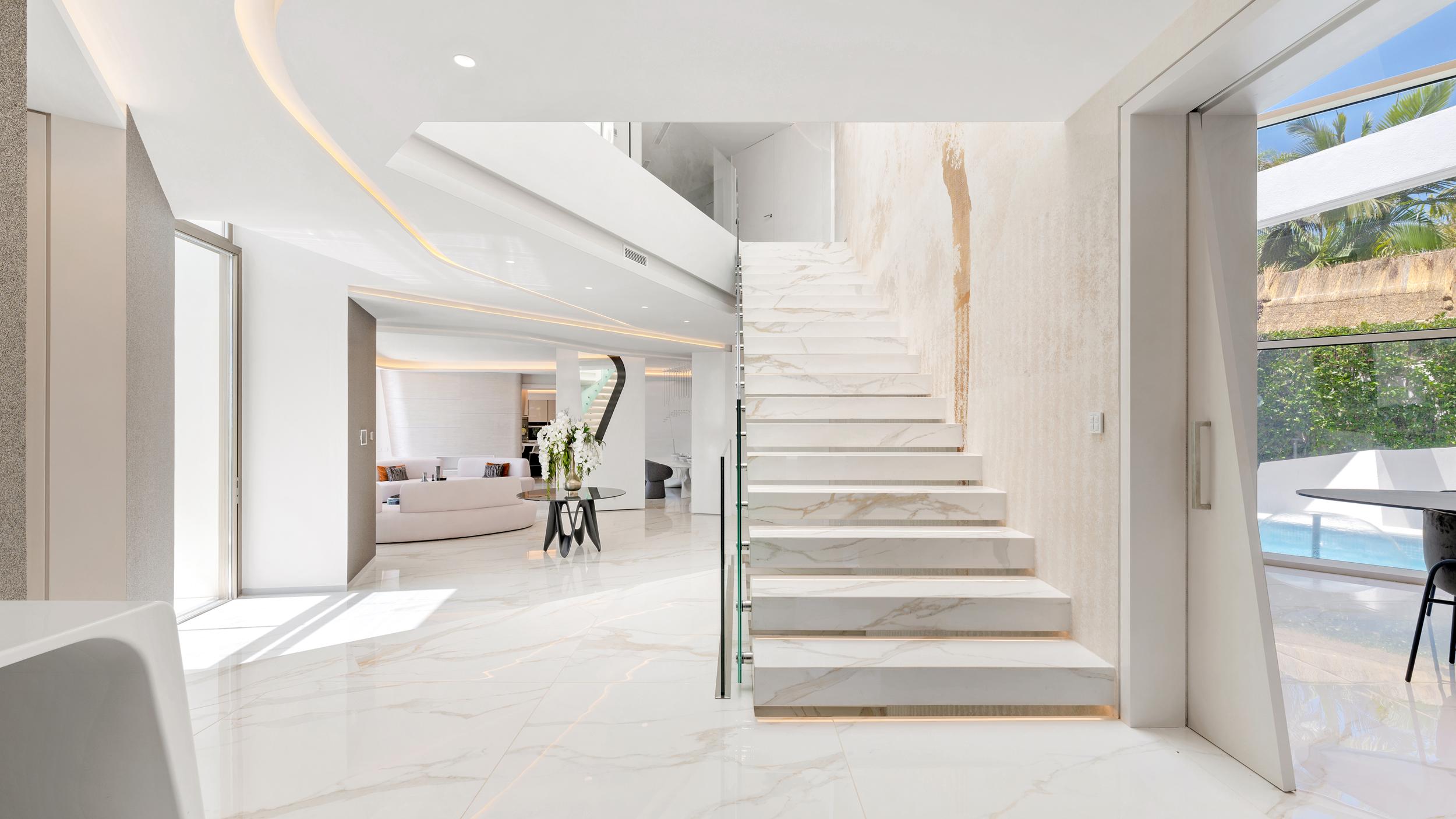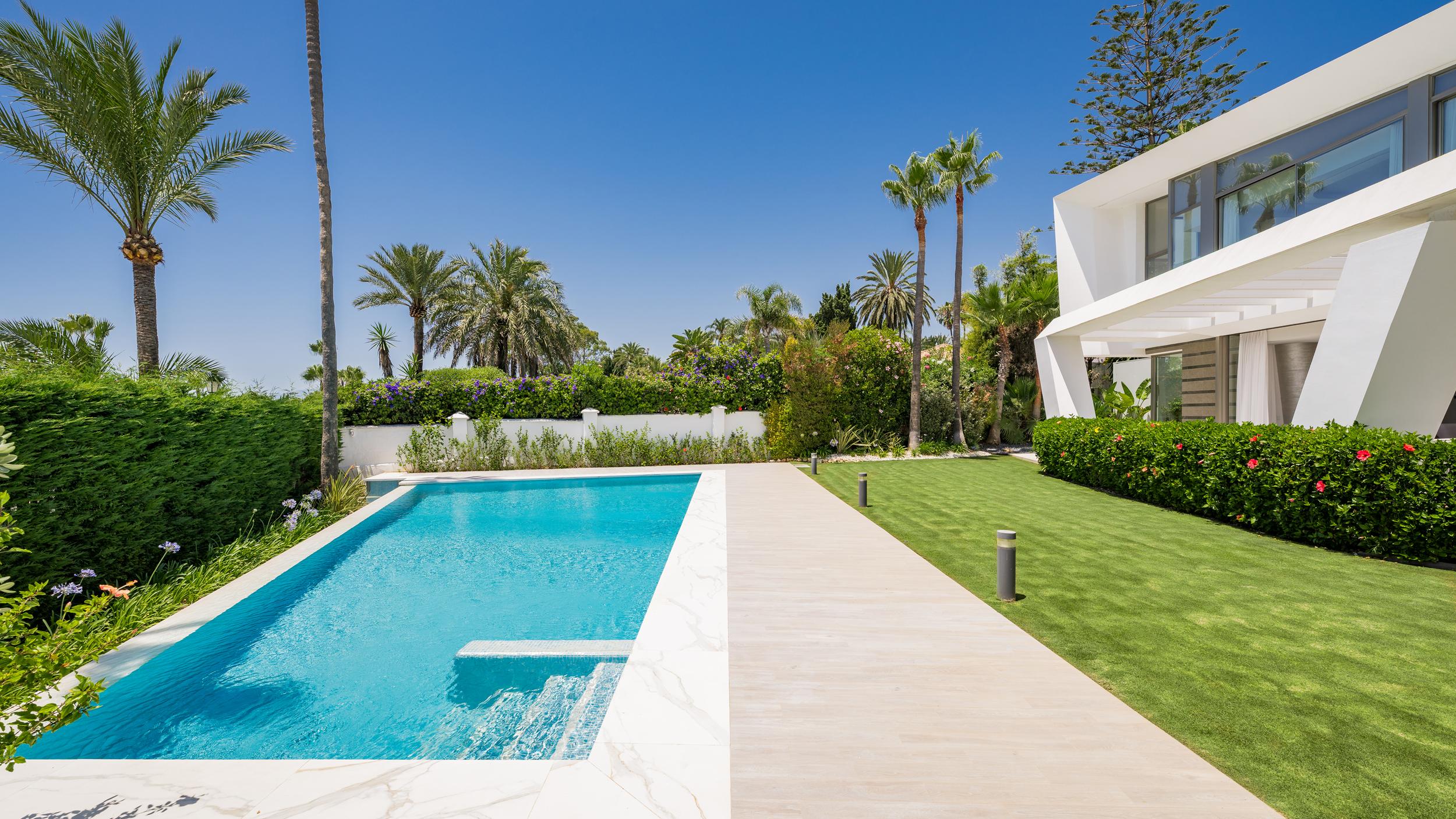 Introducing Villa Marea, a brand-new contemporary villa located just steps from the beach in the prestigious gated community of Los Monteros Playa, Marbella East. This extraordinary six-bedroom residence offers an exceptional level of privacy, elegance, and panoramic sea views stretching towards Gibraltar and the African coast. Designed for modern Mediterranean living, Villa Marea features light-filled interiors, four en-suite bedrooms, and a total of six bathrooms, along with striking architectural elements such as a dramatic double-height ceiling surrounded by water. Its southwest orientation ensures all-day sun, while expansive terraces and a rooftop with a jacuzzi provide the perfect setting to enjoy the views and entertain outdoors. The villa also includes a private swimming pool, landscaped gardens, and a five-car garage, along with a spacious lower level ideal for a home cinema, gym, or spa. Just 10 minutes from Marbella’s city centre and the glamour of Puerto Banús, Villa Marea is a rare opportunity to own a design-led, practically beachfront villa in one of the Costa del Sol’s most exclusive residential areas.