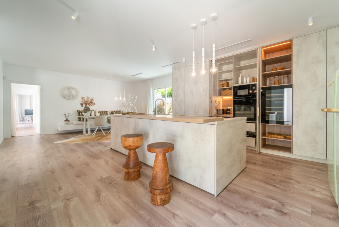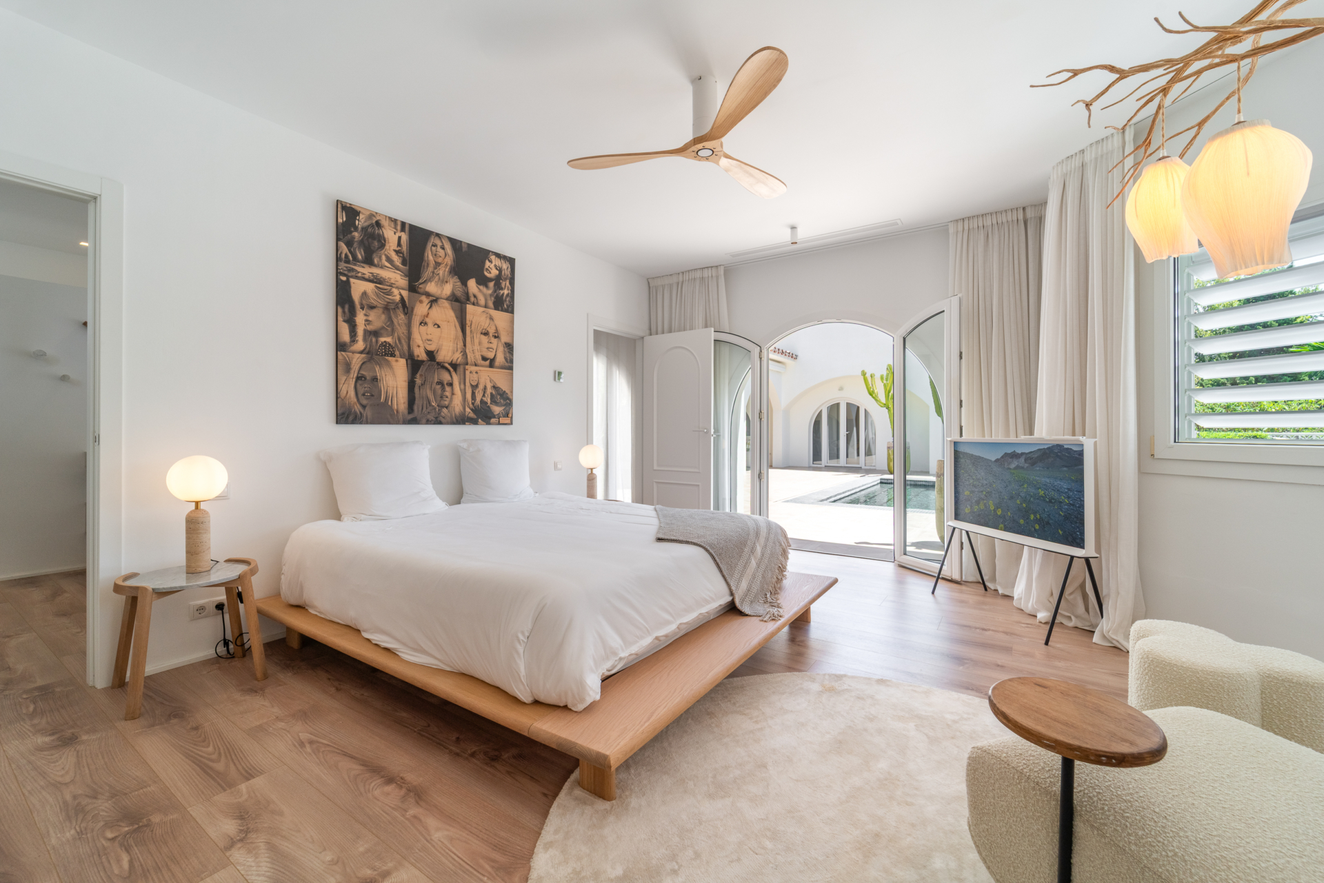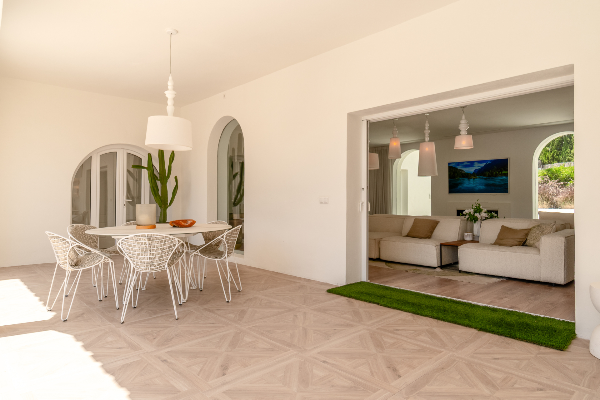 This exceptional west-facing villa, fully renovated in 2023, combines Mediterranean charm with contemporary comfort. Distributed across a single floor, it offers seamless indoor-outdoor living, privacy, and unobstructed sunset views from its spacious terrace, complete with a private pool and outdoor kitchen.