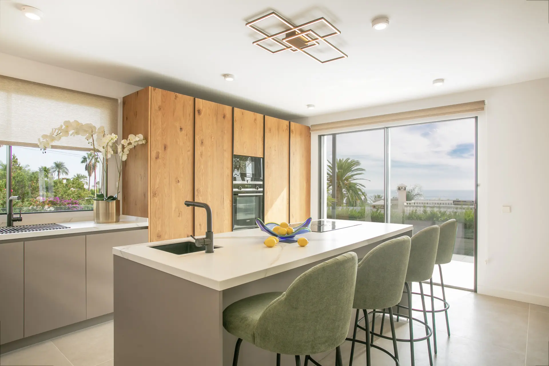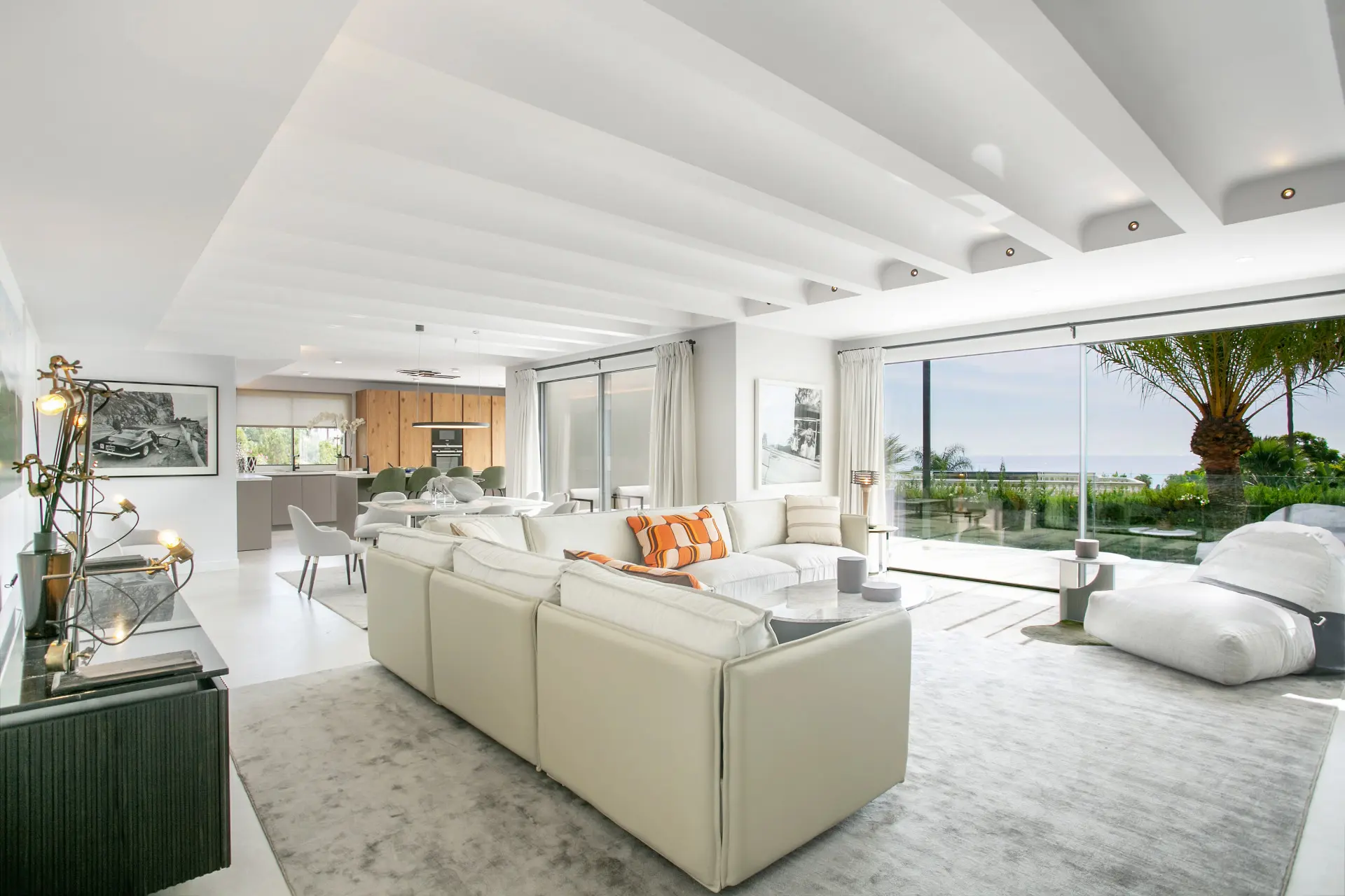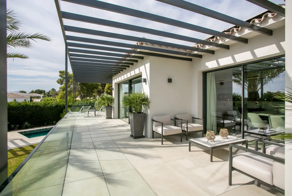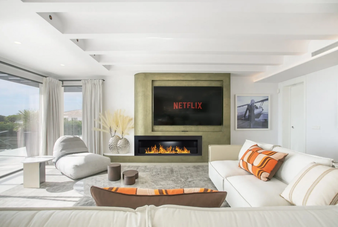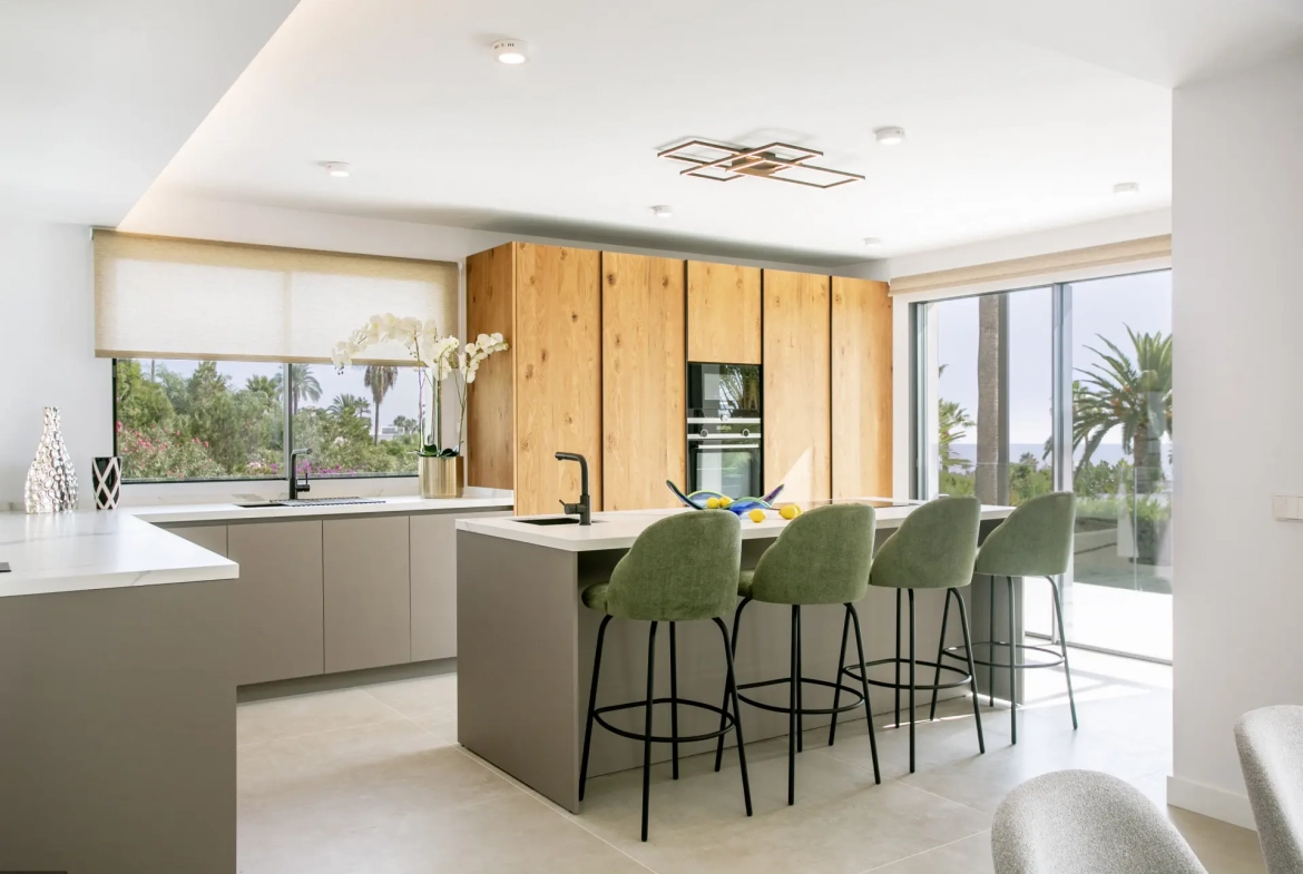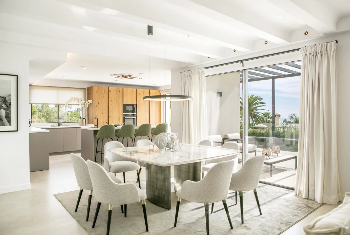 Large openings connect the main living spaces directly to an expansive terrace featuring sea views. Therefore, the property embraces Marbella’s indoor–outdoor lifestyle, creating a seamless connection between interior and exterior environments.