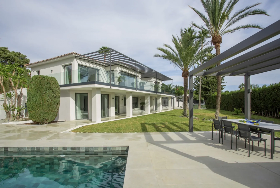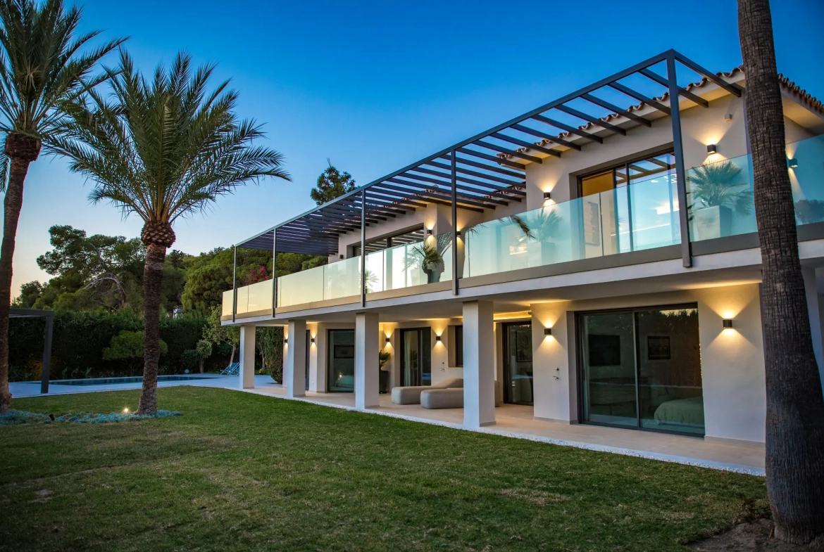 Located in Rocío de Nagüeles, one of the most established residential areas of Marbella’s Golden Mile, this modern five-bedroom villa is currently undergoing a complete renovation. The property enjoys a highly convenient setting, positioned within easy reach of Marbella’s key amenities, international schools, and the coastline. Consequently, the residence offers an exceptional lifestyle opportunity just five minutes by car from Puente Romano, Marbella Club, and the surrounding beaches.