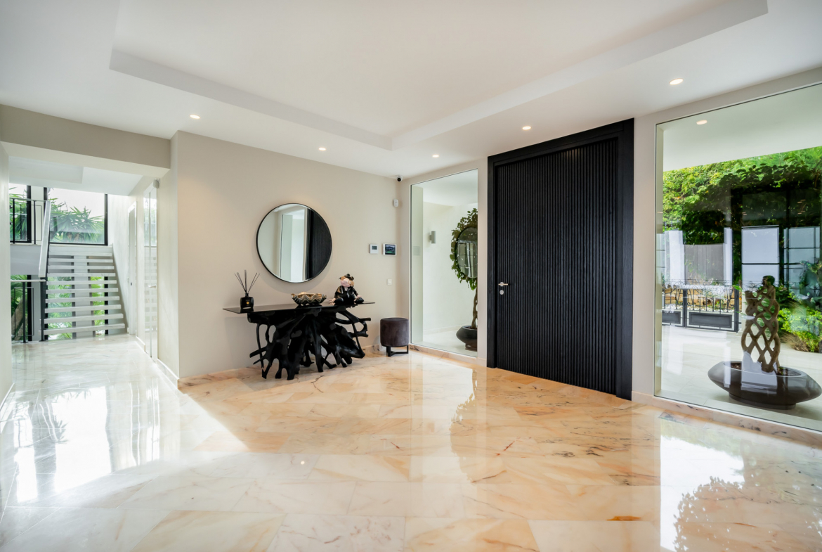 The villa’s classical architecture introduces a timeless character, while contemporary features ensure modern comfort and functionality throughout.