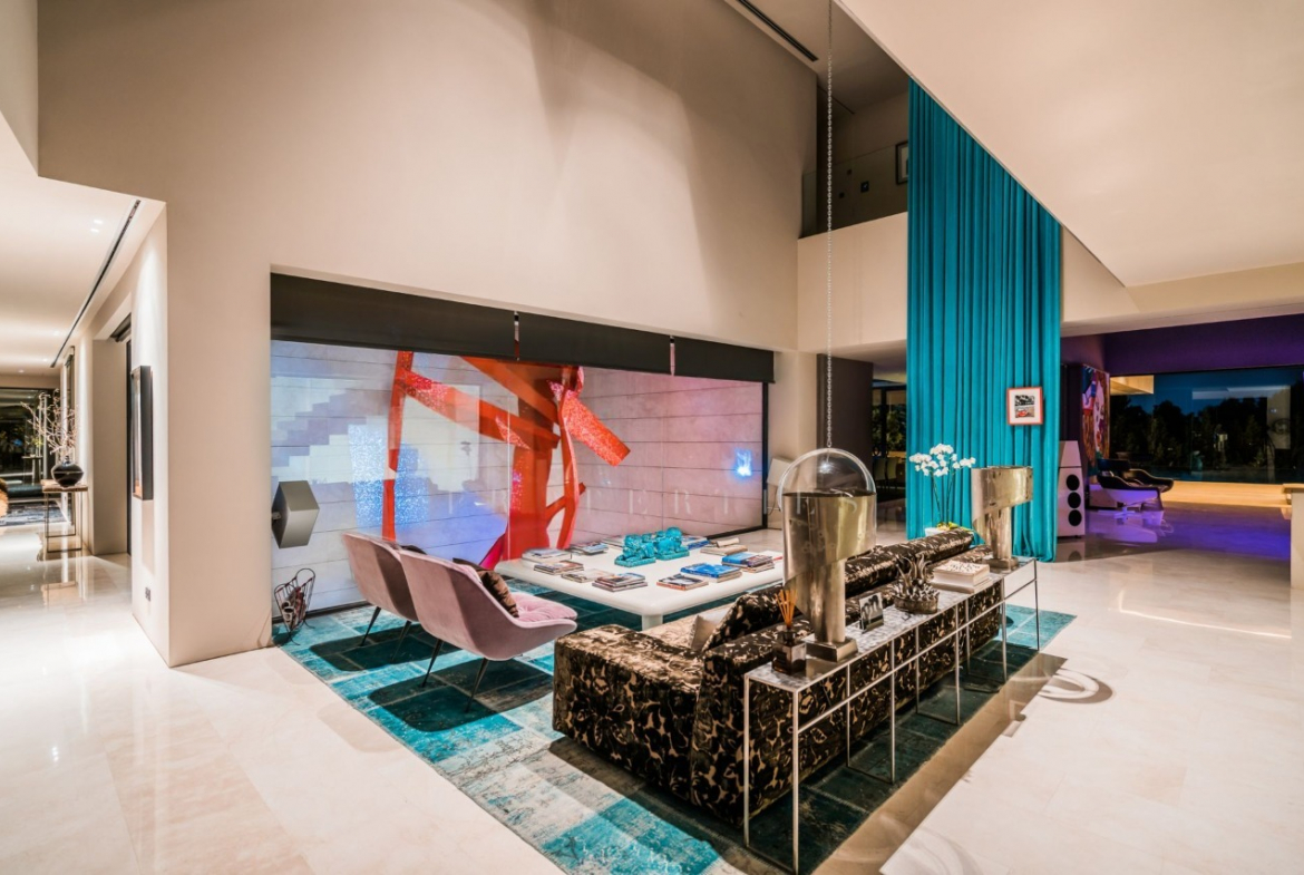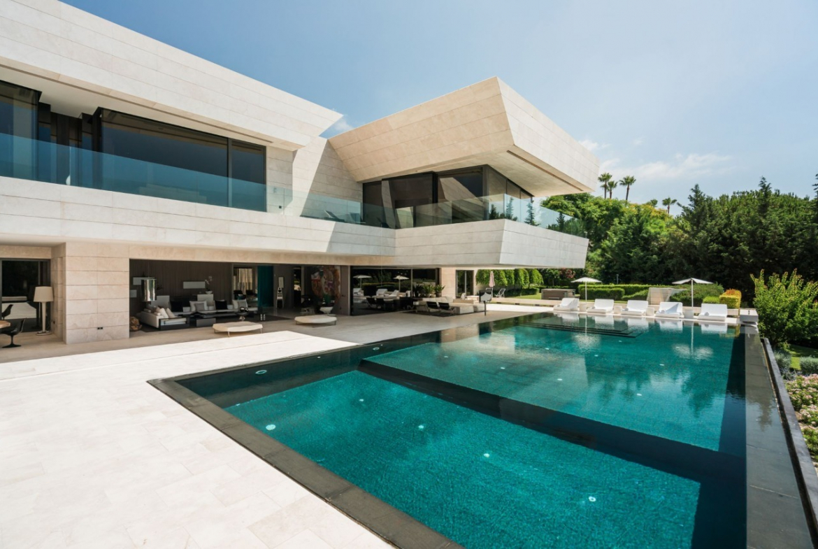 If you’re searching for a super-modern and sophisticated mansion, look no further than this breathtaking modern villa. Designed by the renowned architect Joaquin Torres, this architectural masterpiece is perched on the foothills of Sierra Blanca, surrounded by natural greenery overlooking the Mediterranean Sea. The villa, exudes contemporary elegance and practical appeal, setting a new standard of architectural refinement and creative excellence in Marbella. Boasting 3,152m2 of living space, with spacious rooms that are modern and impressive yet cozy and inviting.