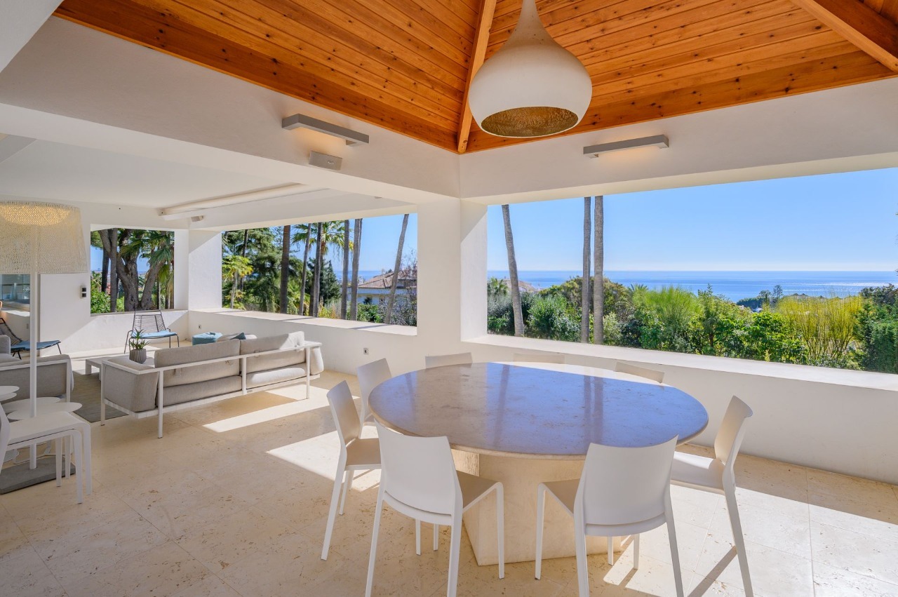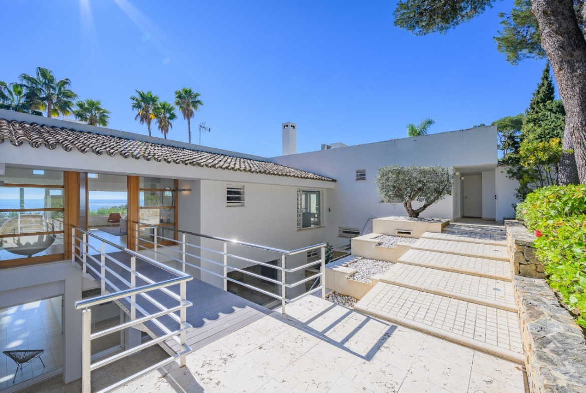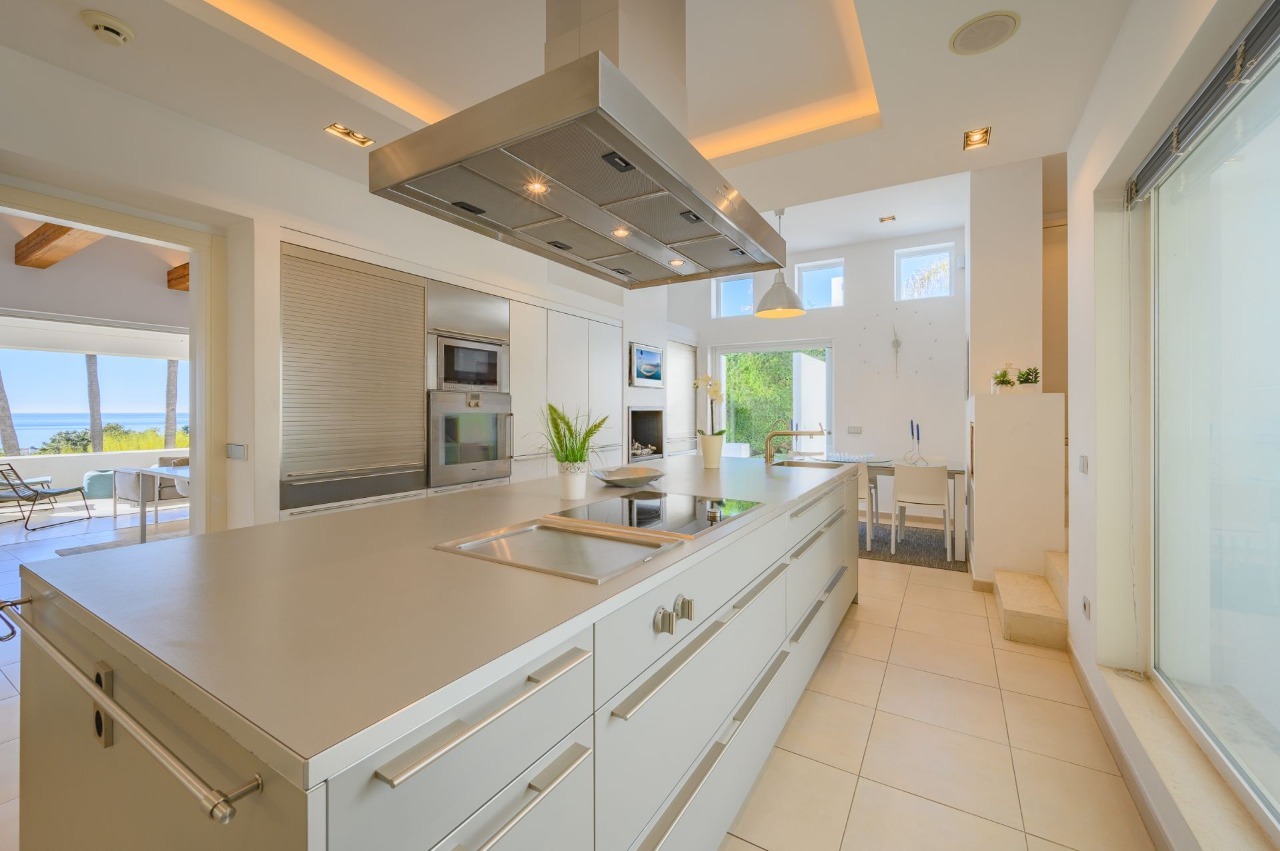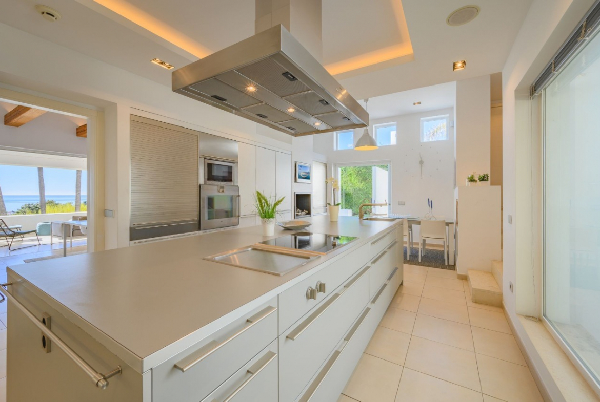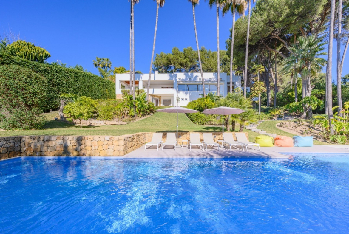 Designed for outstanding outdoor living, the villa features a private swimming pool nestled in lush tropical gardens, extensive terraces ideal for dining and relaxation, and even its own charming chiringuito (beach bar), perfect for memorable family gatherings and entertaining guests.