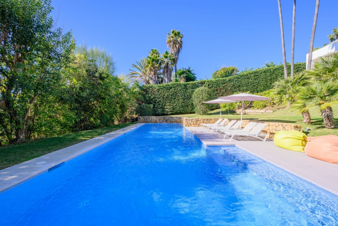 Discover this exclusive modern villa, ideally located within Marbella’s prestigious Golden Mile. This elegant south-facing villa combines contemporary style with exceptional comfort, offering a sophisticated Marbella vacation just steps from the beach and close to renowned restaurants, boutiques, and amenities.
