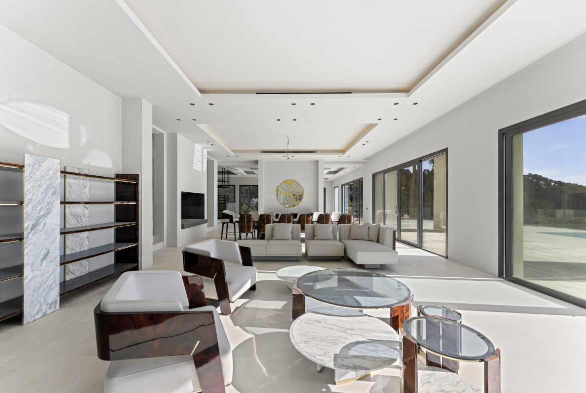The villa occupies a privileged frontline position with panoramic views stretching across the Mediterranean Sea. In addition, a protected natural pine forest in front of the property enhances privacy while framing the coastal panorama.