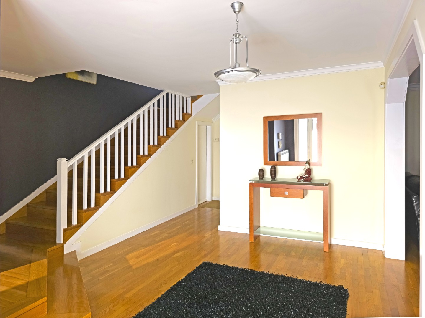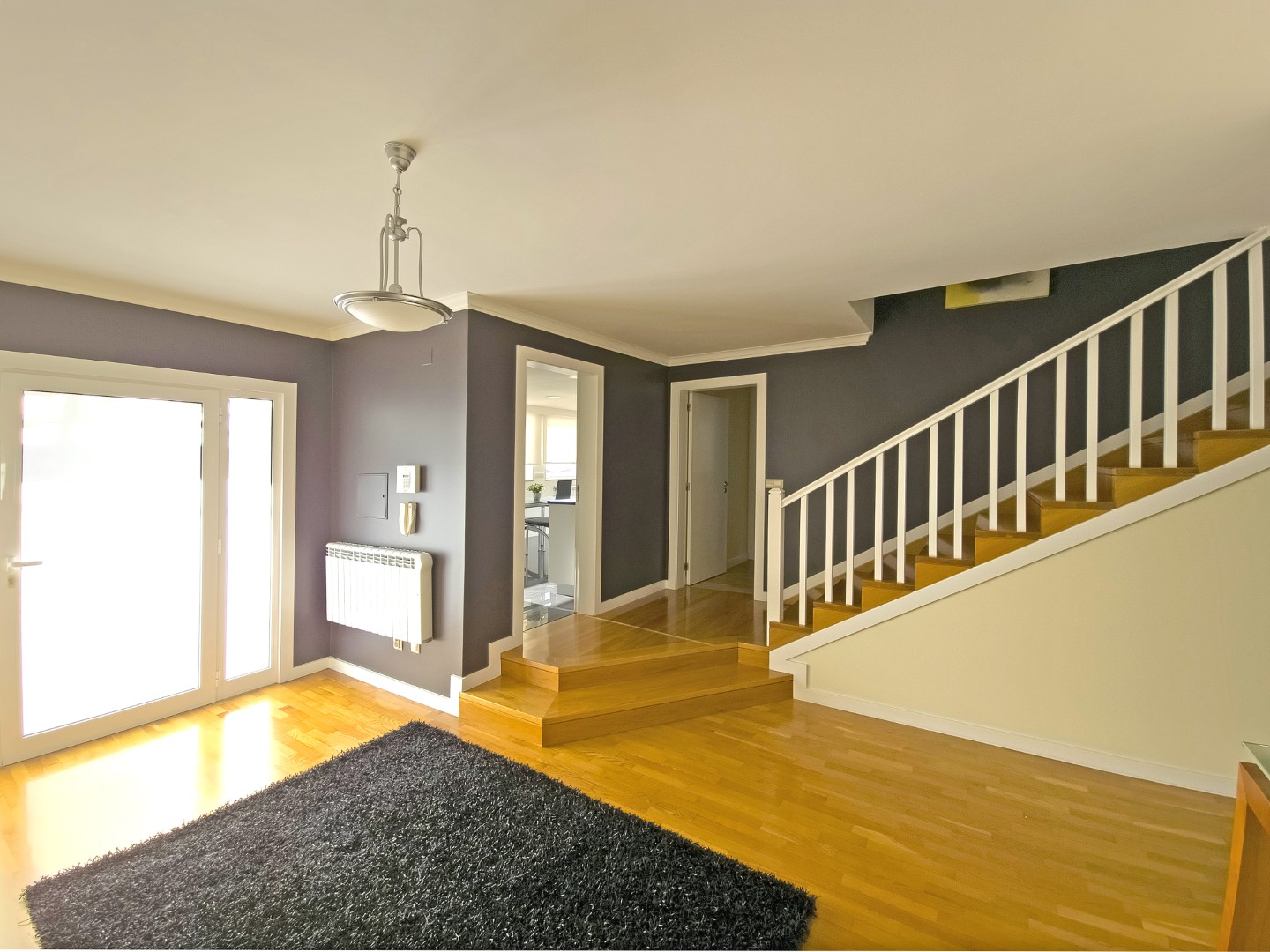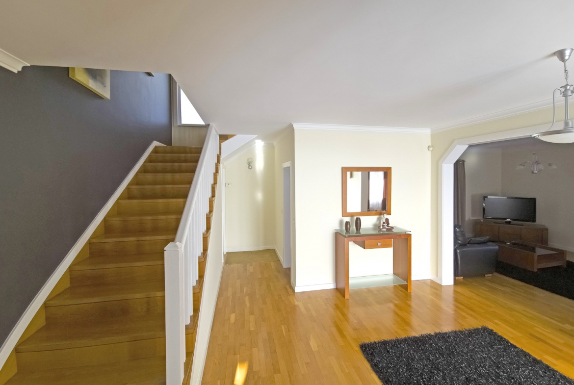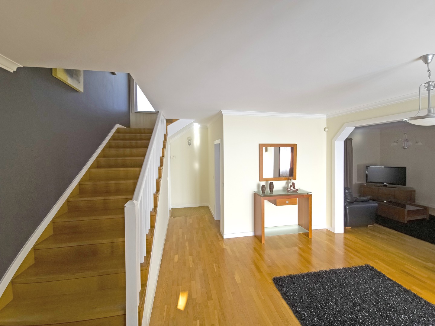 Solar panels and a heat pump improve energy efficiency and support sustainable living. As a result, the home combines modern comfort with responsible energy use.